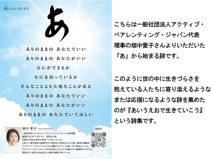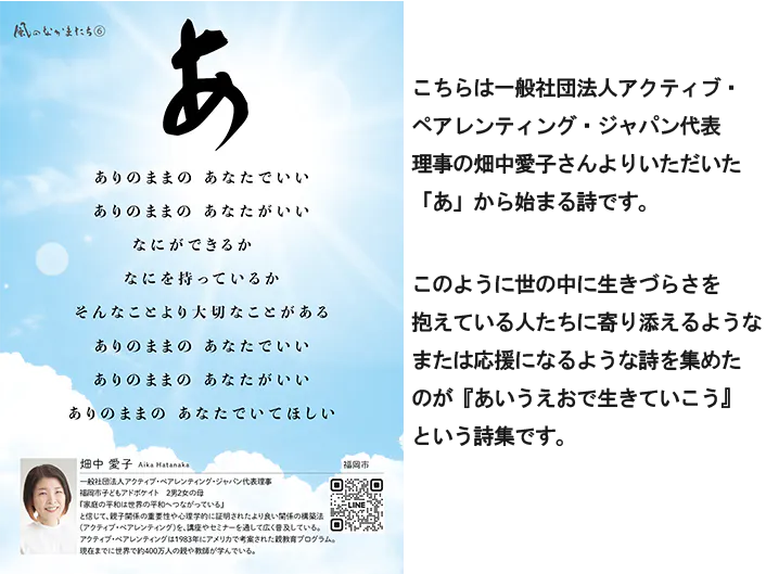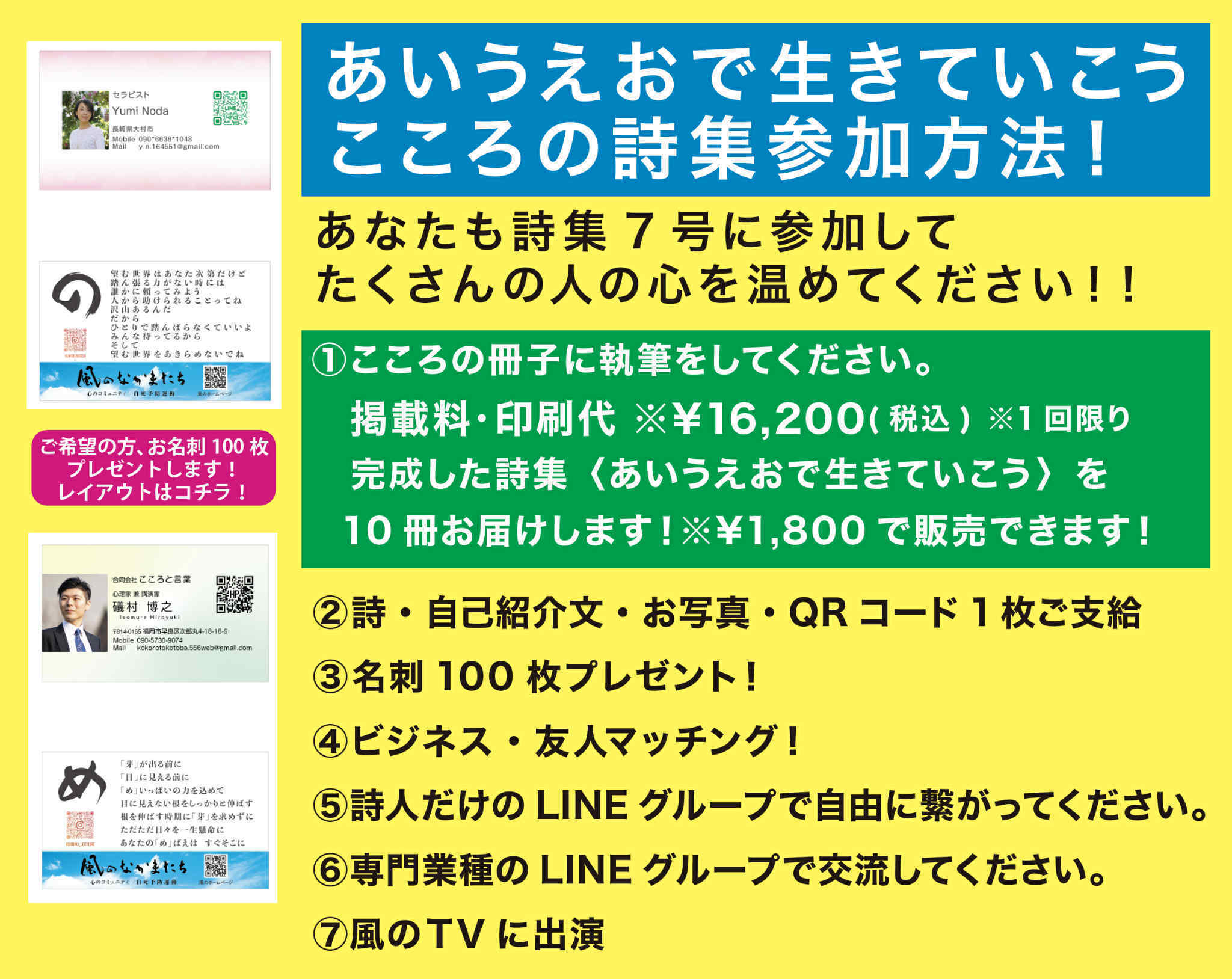 心の詩集《あいうえおで生きていこう》に詩で参加してくださる人も募集しています。