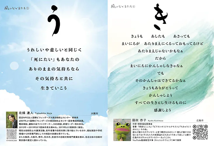①こころの詩集《あいうえおで生きていこう》を作成、配布しています。