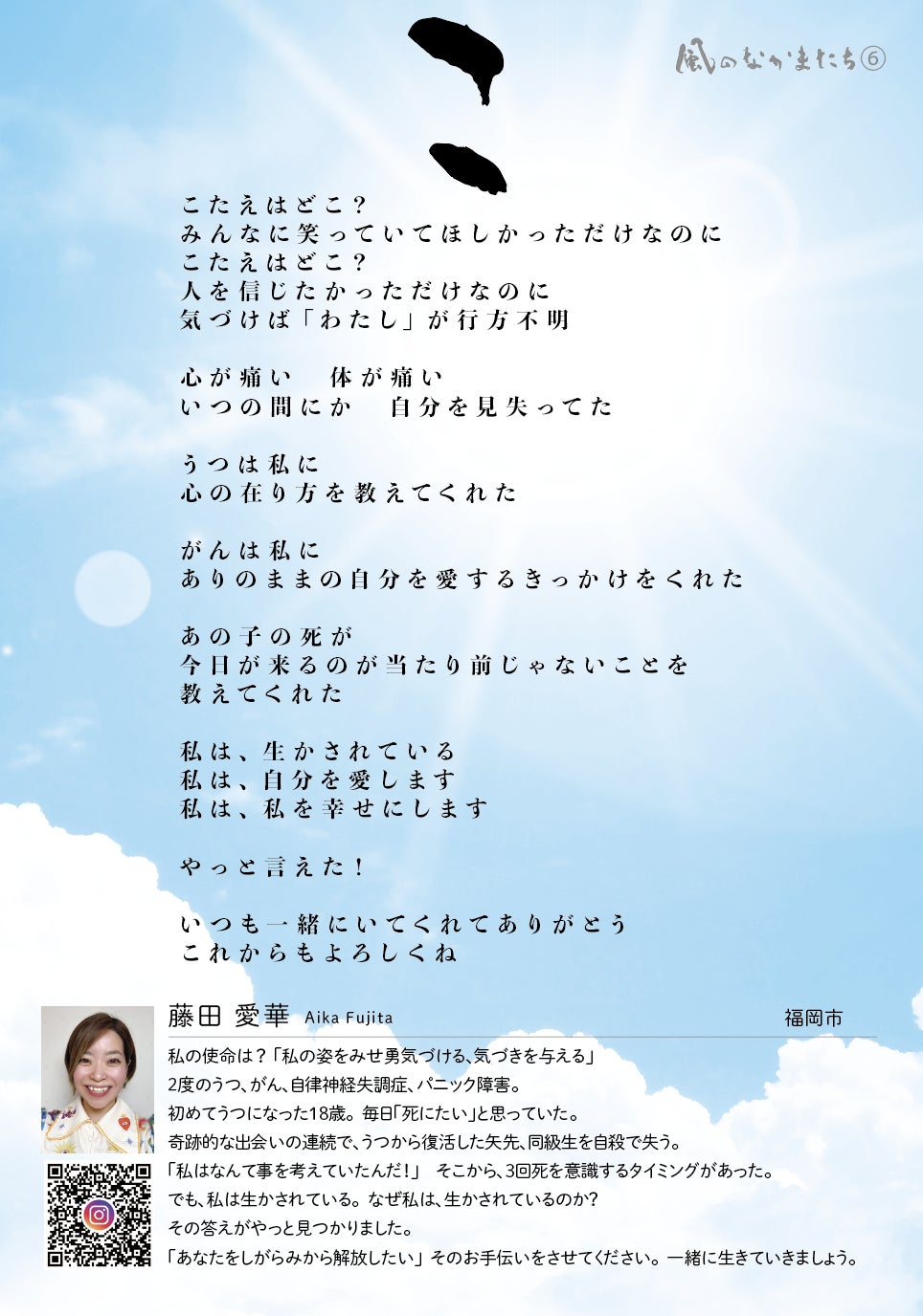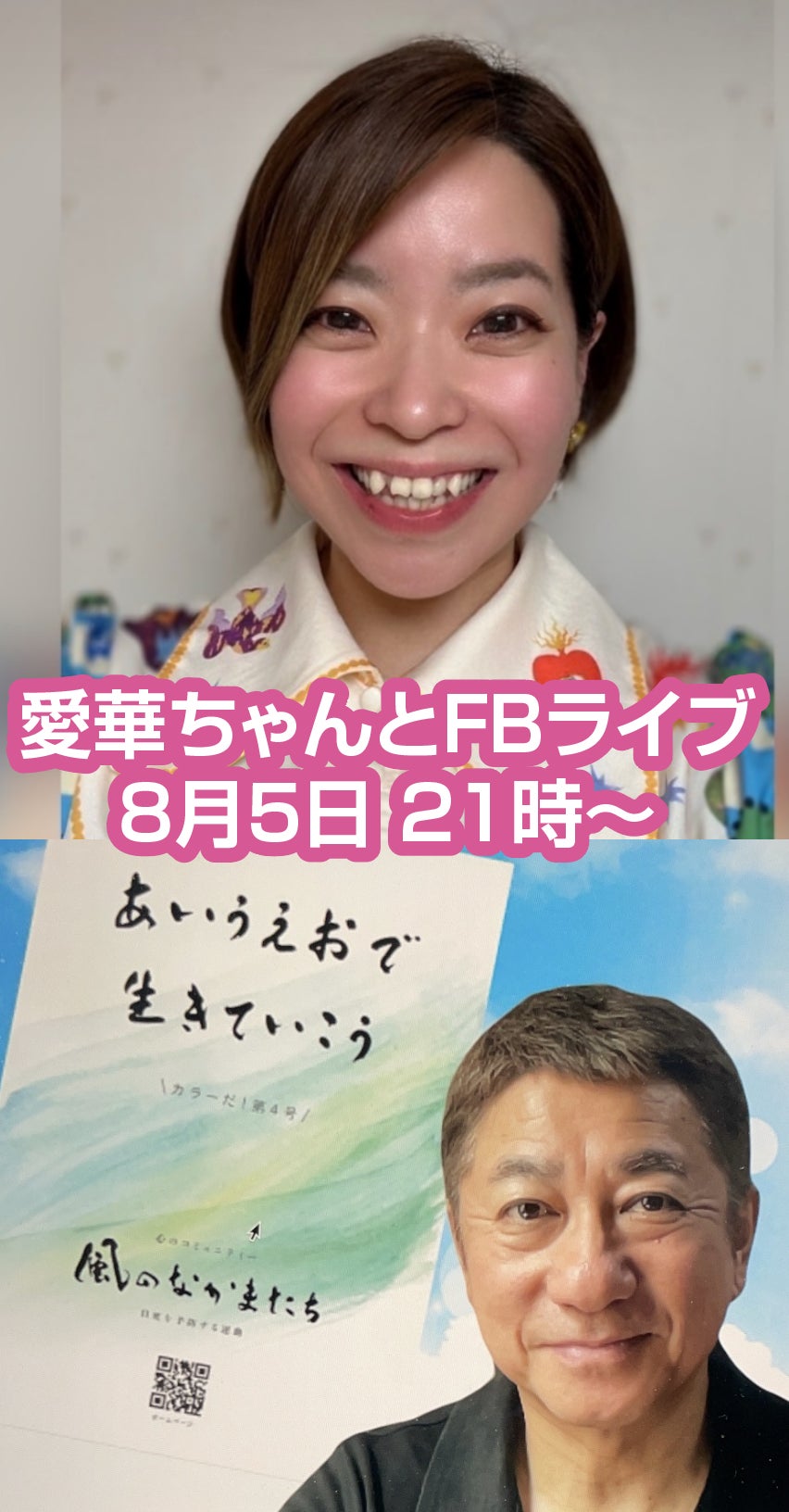 風のなかまたち@福岡市の藤田 愛華さんとFBライブしました。人想いの愛華さんは、うつ・がん、様々な試練を、自分を許すことで乗り越えてきました。