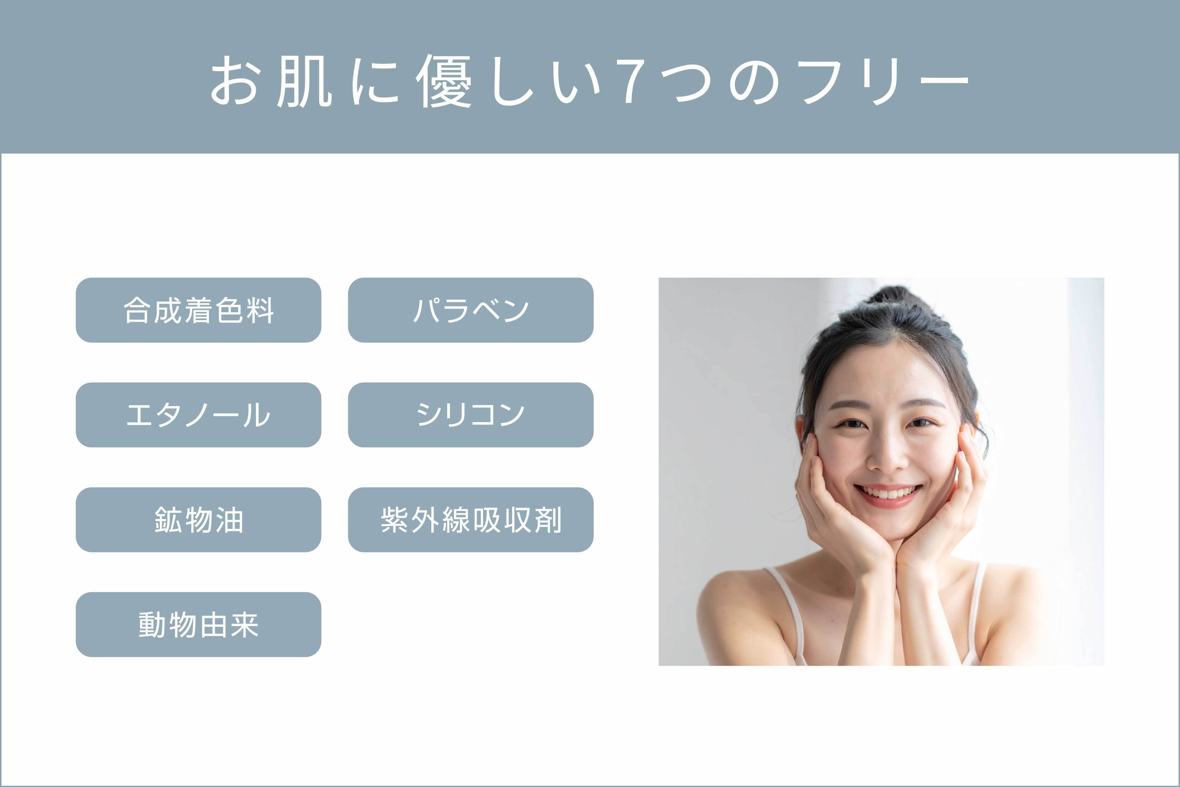 Point 3:お肌に優しい7つのフリー・ 7つの無添加