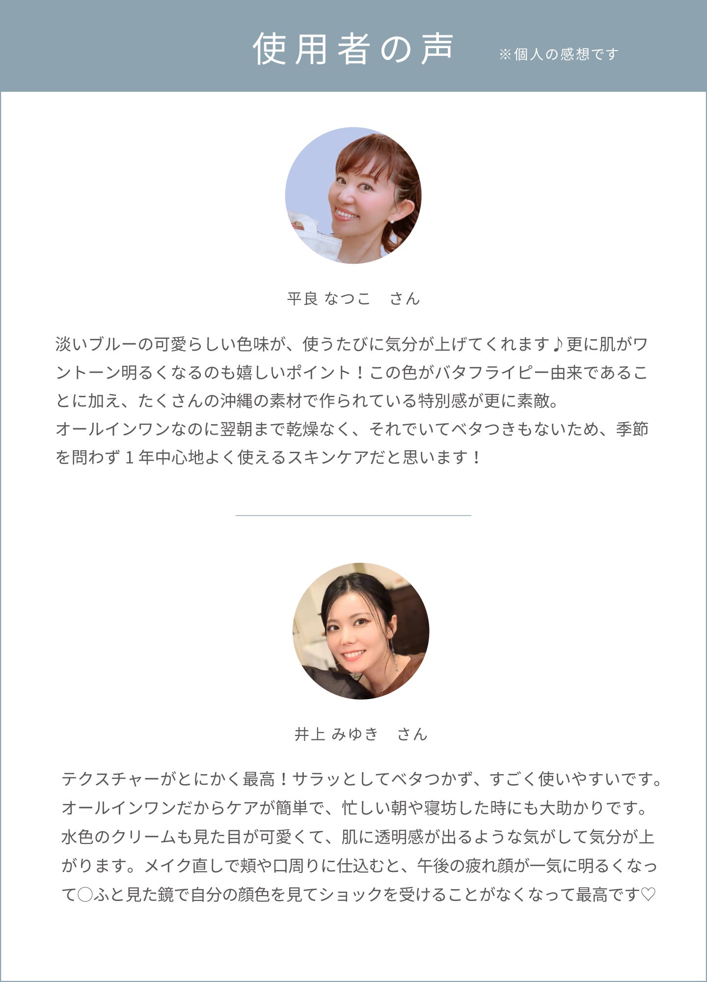 忙しい毎日でも、心地よく肌をいたわる時間を持ちたい――。その願いに応えてくれたのが、沖縄の空や海のような鮮やかな青を持つ植物「バタフライピー」、そして沖縄の太陽や自然の恵みをたっぷりと受けた植物たちです。