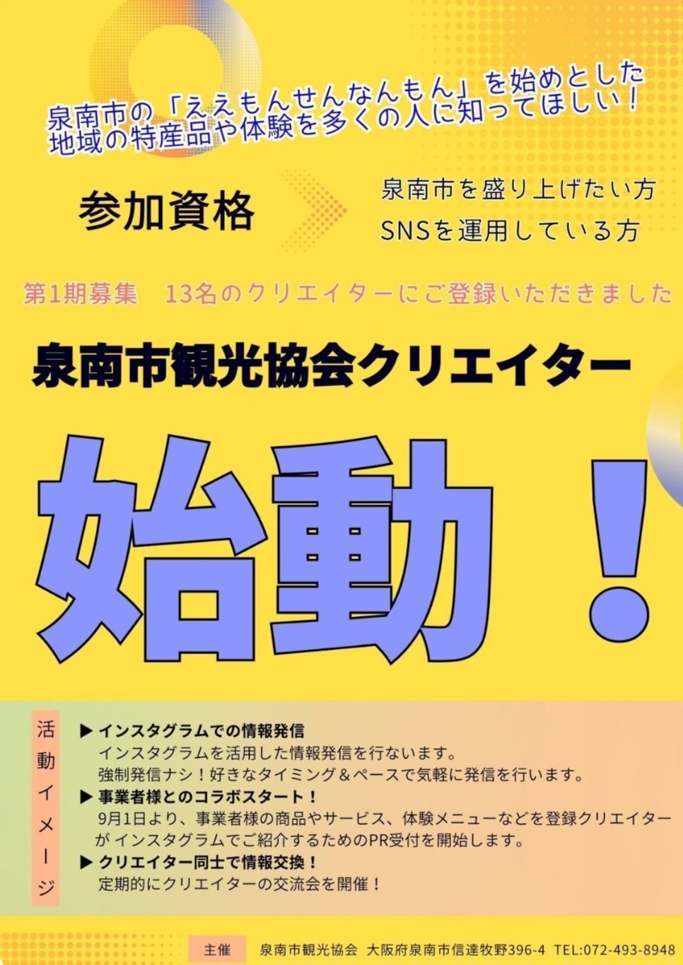 今日は『泉南市観光協会クリエイター事業』の初会合をrojicaにて開催しました。泉南市の魅力を発信していくクリエイターさんの自己紹介や意見交換、今後の展望について話合いました。とても有意義な時間を過ごしました!