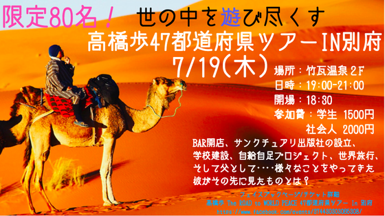 〜限定80人!〜世の中を遊び尽くす高橋歩 The ROAD to WORLD PEACE 47都道府県ツアー In 別府
