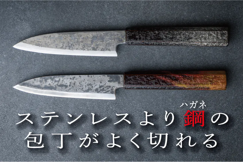 鋼の包丁はステンレス包丁より切れ味が良い!!本物の刀鍛冶が作る包丁と特殊な漆で仕