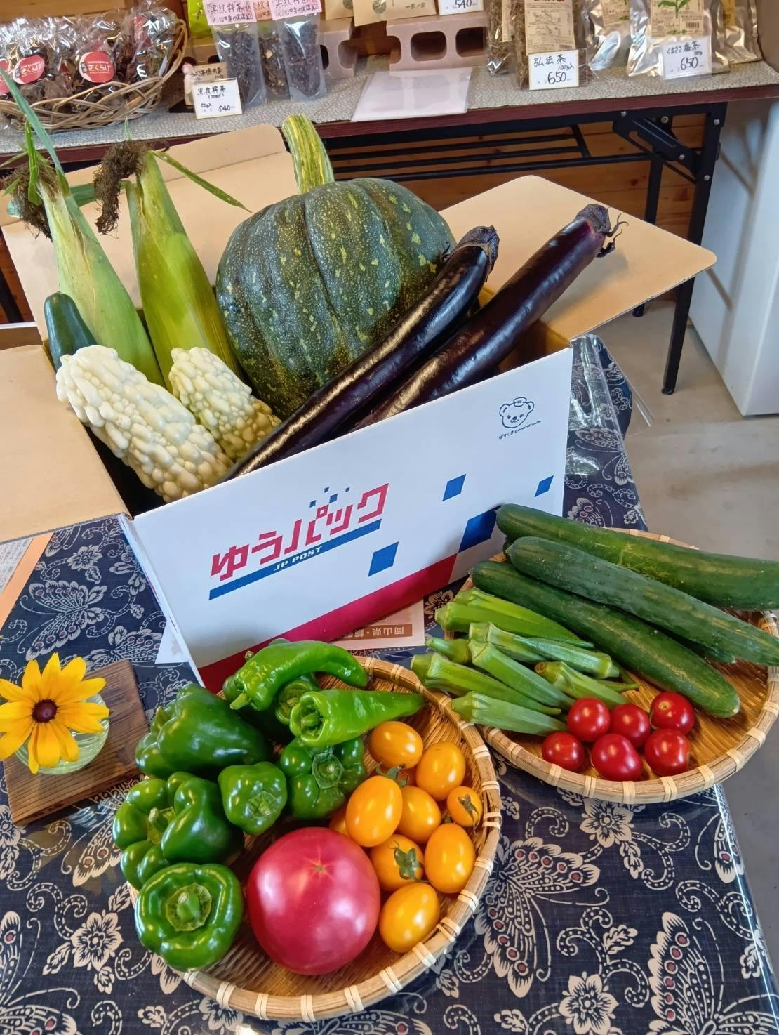 鏡野町・上齋原の特産品や野菜を、まるで田舎のお母さんが都会に暮らす娘に送るように心を込めて詰め合わせます。