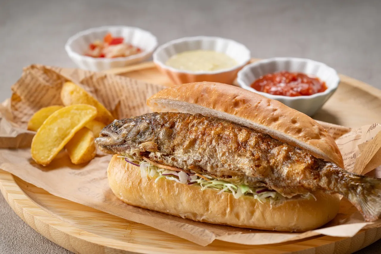 おすすめは、鏡野の清流で育ったアマゴ(ヒラメ)をまるごと1匹使った 「かがみのヒラメサンド」(980円)。さっぱりとしたサルサ、まろやかなタルタル、甘酸っぱいトマトの3種のソースで味わう、ご当地感たっぷりの一品です。