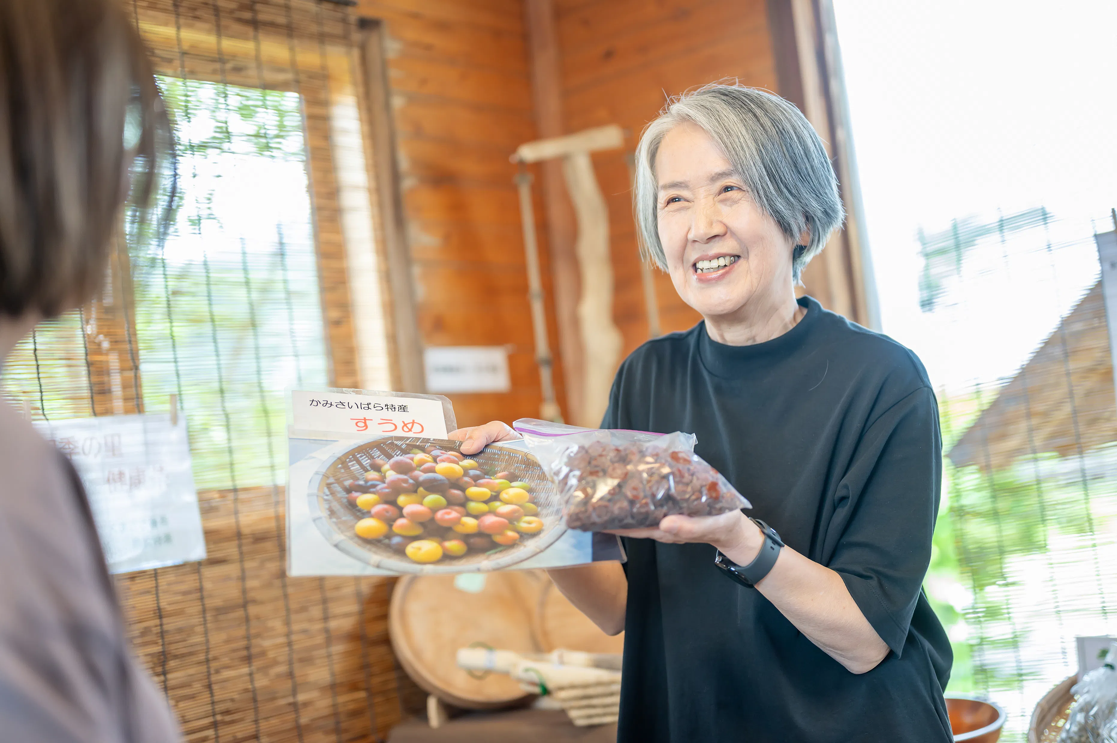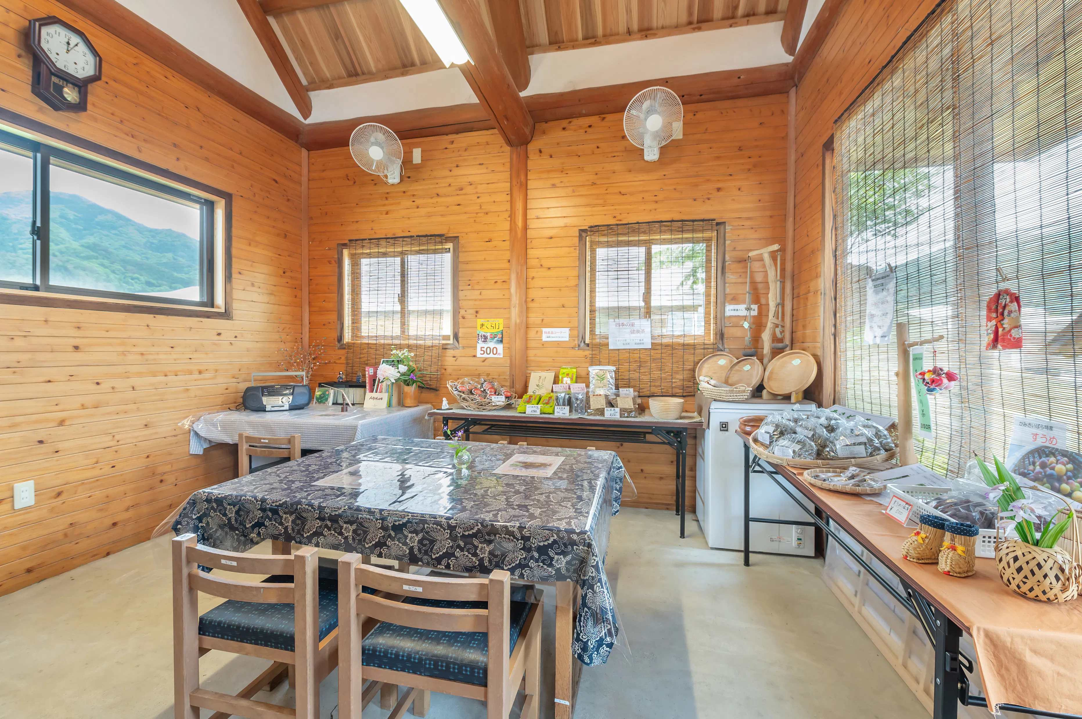簡易的なテーブルとイスはありますが、現在は飲食営業許可がないため、その場での飲食提供ができず、たとえば「地元のお茶と一緒に山菜弁当を楽しむ」ことが叶いません。