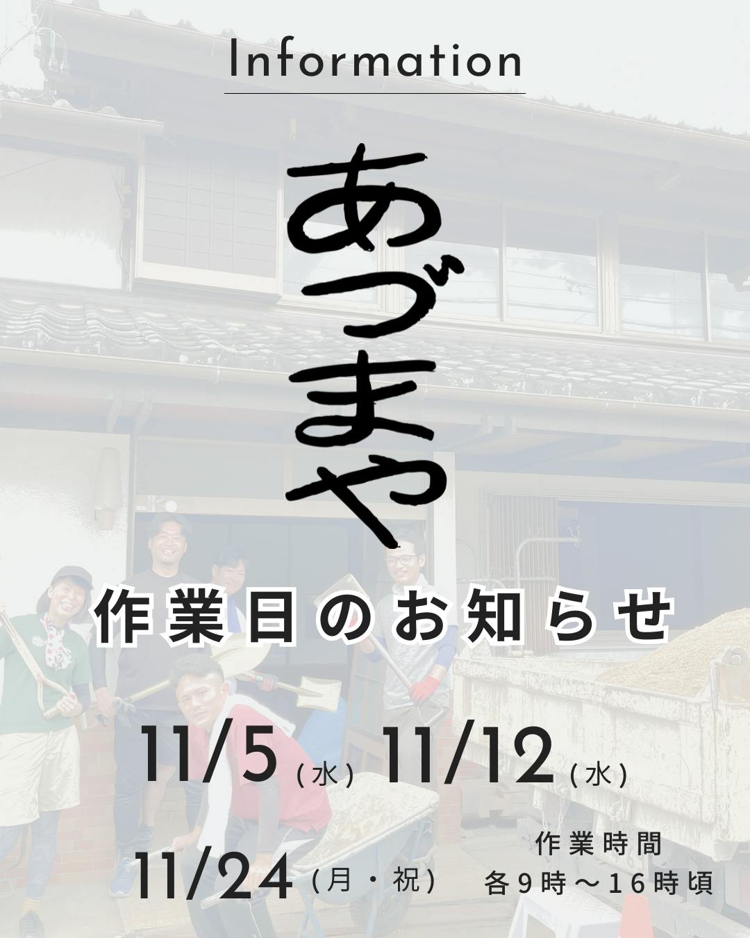 今後の作業日程も11月分だけですが、まとめていますので、ご参考ください。