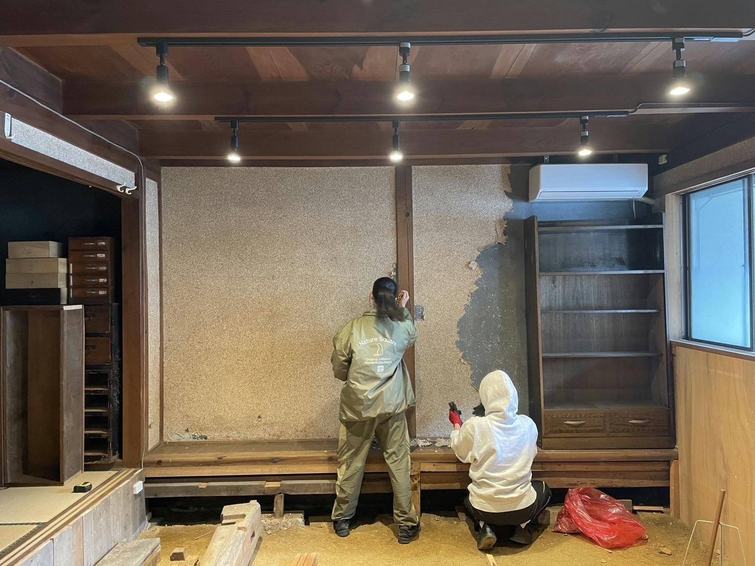 本棚を接する壁面の壁紙剥がし作業をしました◎