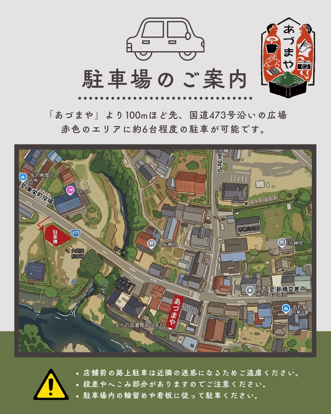看板等をつける予定ですのでそちらを目印にご駐車ください。
