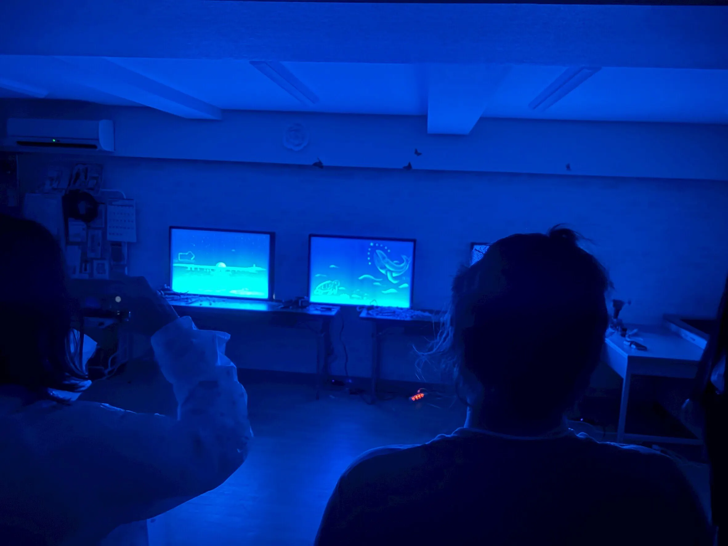 光彫りがつくり出す青い幻想世界。その空間に身を委ねることで、まるで水の中にいるような没入体験が生まれます。