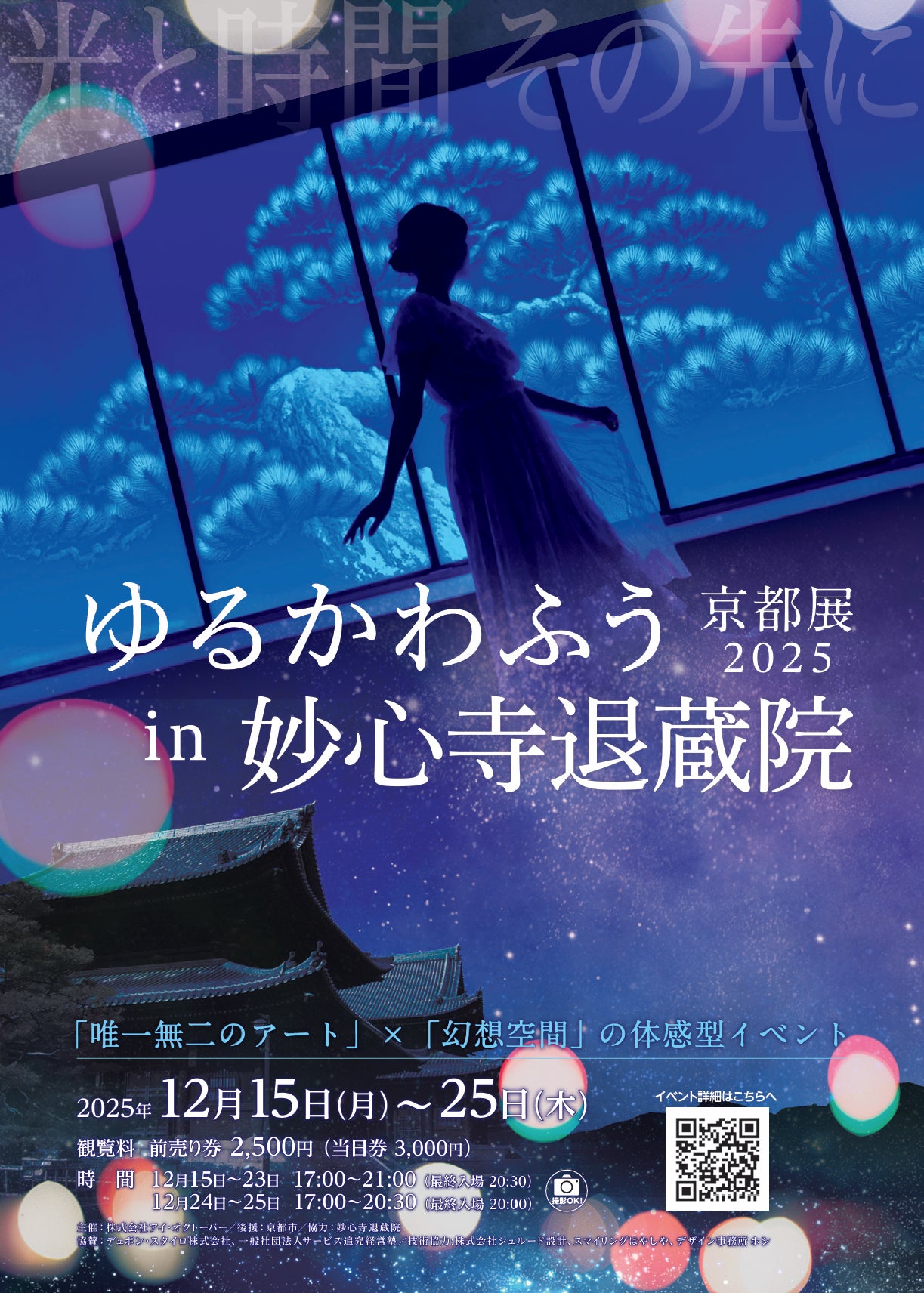 美しい青色と、夜の妙心寺退蔵院ライトアップをイメージして作成いたしました。