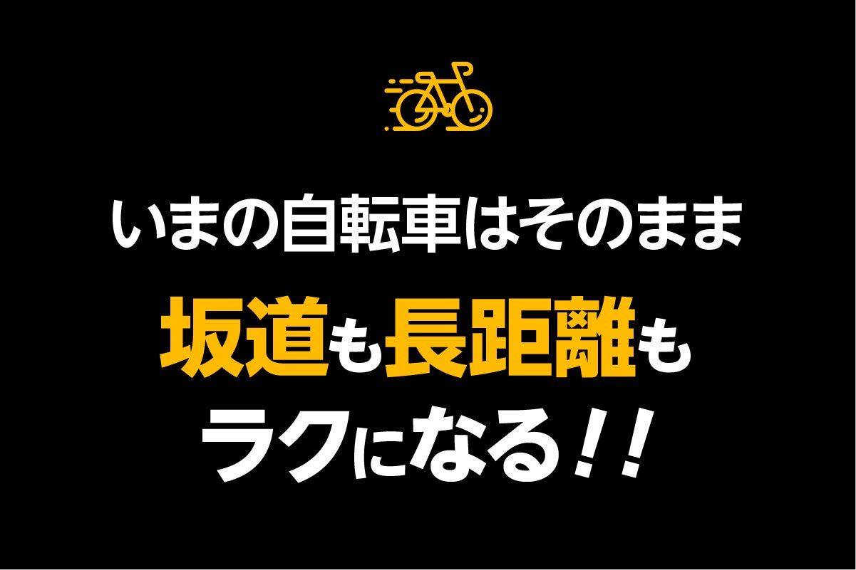 お気に入りの自転車の外観や乗り心地はそのまま、買い替えコストゼロで電動アシストの恩恵だけをプラスできます。