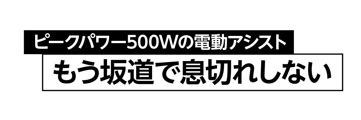 ピークパワー500Wのパワフルモーターの優れた登板力で坂道の負担を大幅軽減し、通勤・サイクリングがラクになります。