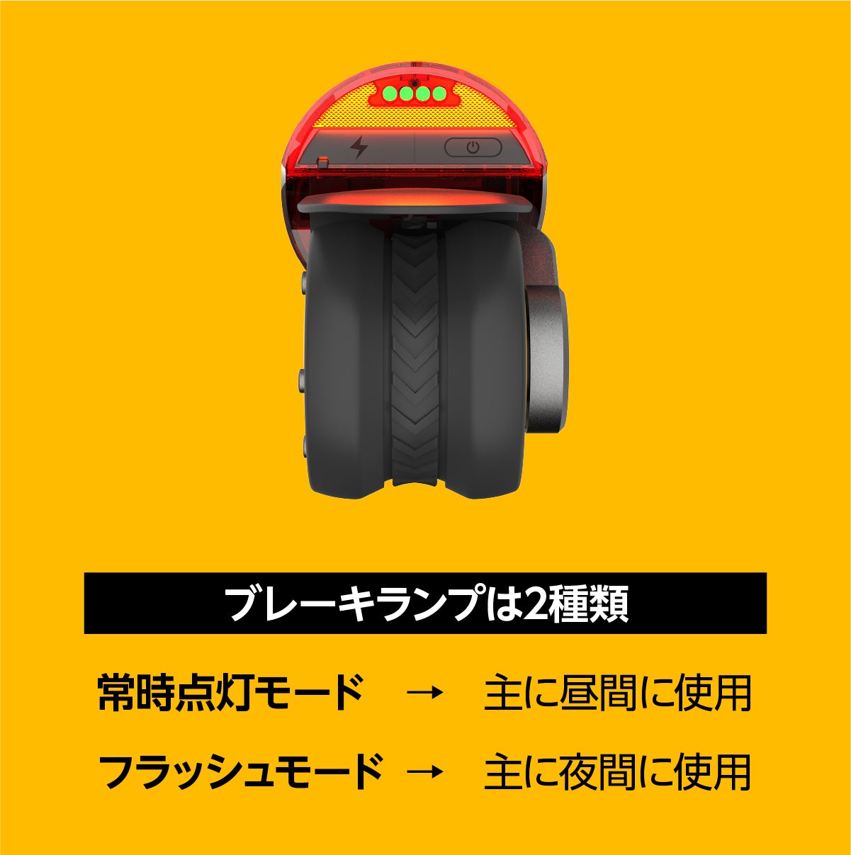ブレーキをかけると自動でブレーキライトが点灯、左右のウインカーもボタンひとつで操作可能。