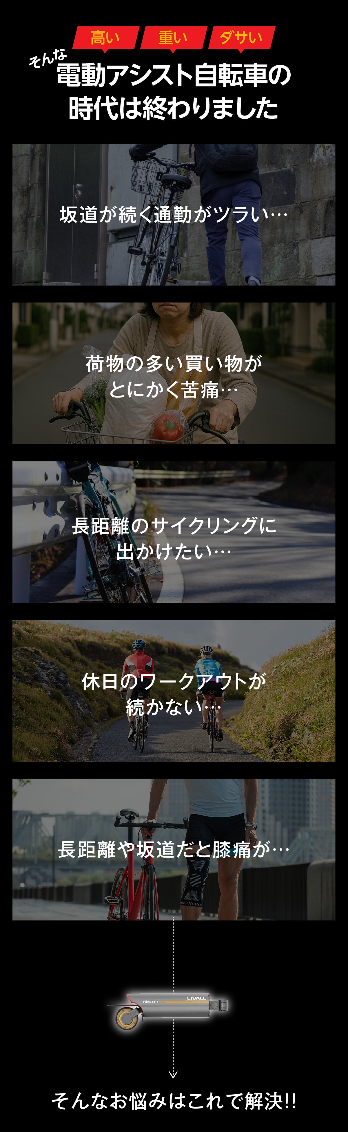 でも、長時間乗れば膝や関節への負担は意外と大きいです。年齢や体調の変化で「もうサイクリングは無理かも...」と諦めていた方も、再びライドの楽しさを取り戻せます。
