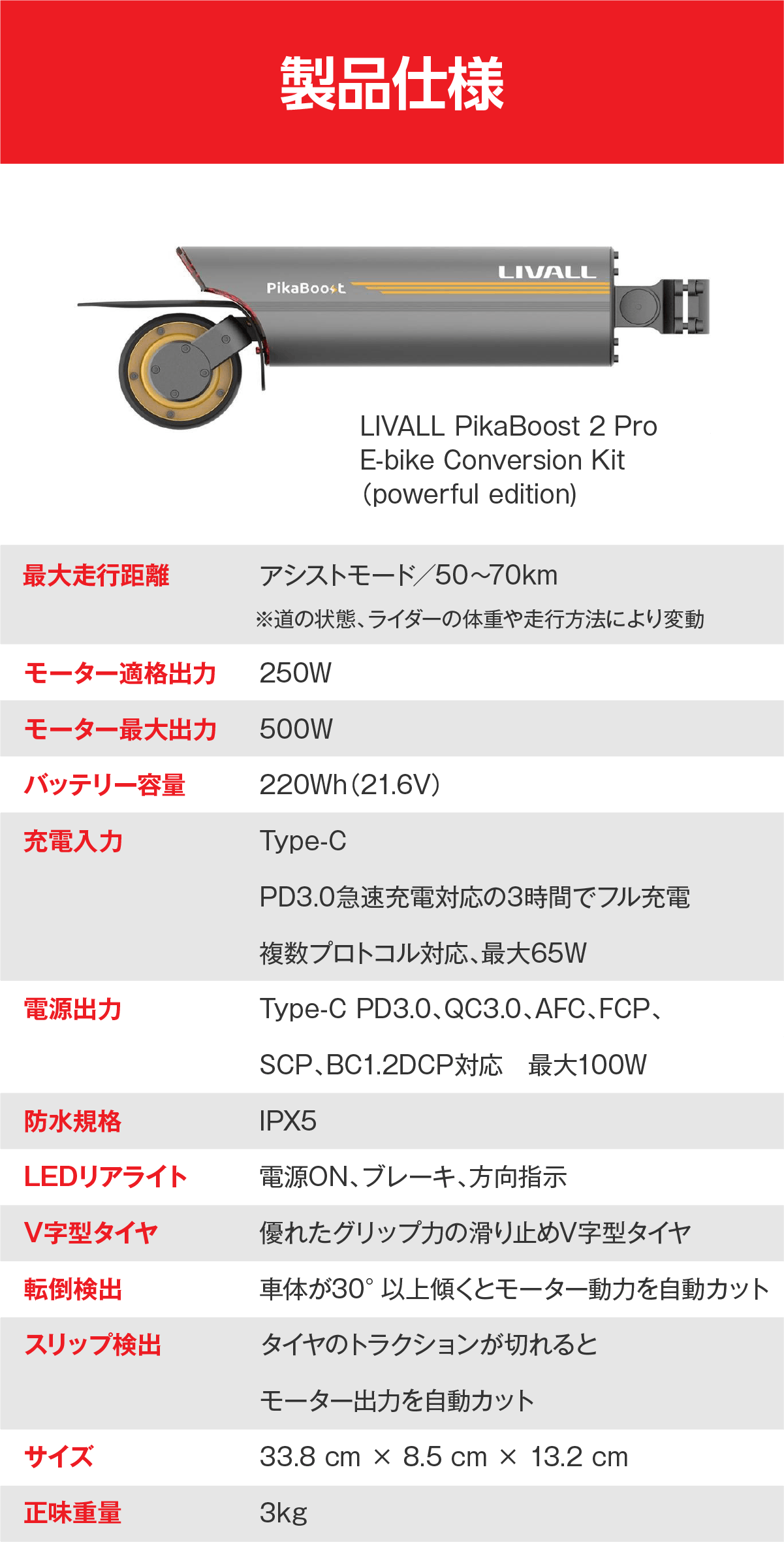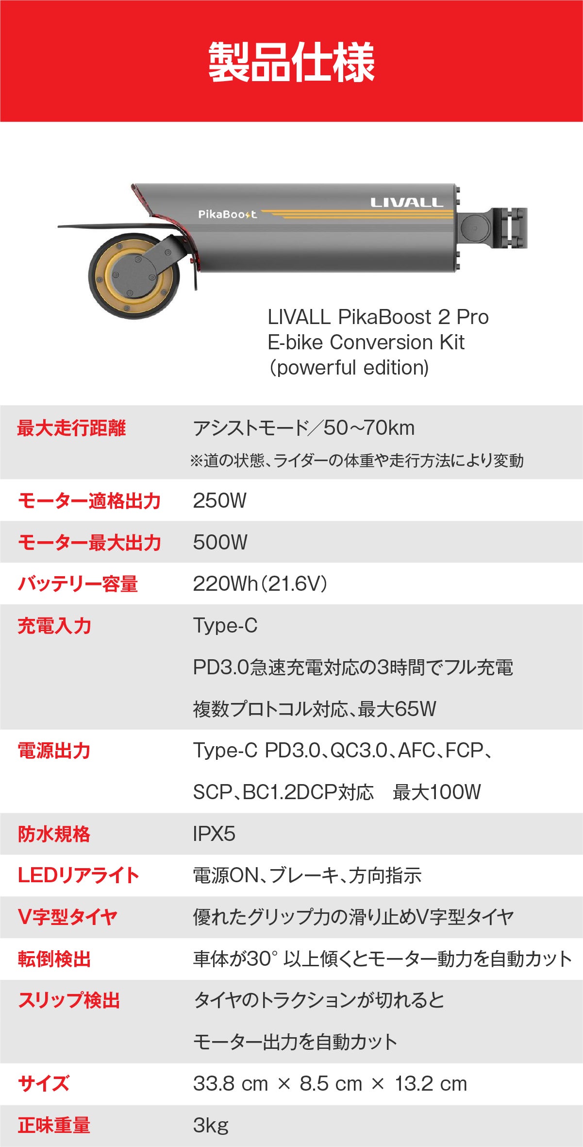 開発にあたり、PikaBoost 2 Proをよりパワフルで直感的、そして初代モデルよりもさらに多くの自転車に対応できるよう、2年以上にわたって改良を重ねてきました。この第2世代モデルでは、スマートな電子ブレーキ、転倒検知、滑りにくいV字型タイヤなど、安全性を高める機能も新たに搭載されており、より賢く信頼できる走行のサポート役となる製品です。単なる性能向上にとどまらず、現代のサイクリストに寄り添うスマートモビリティのパートナーとなっています。