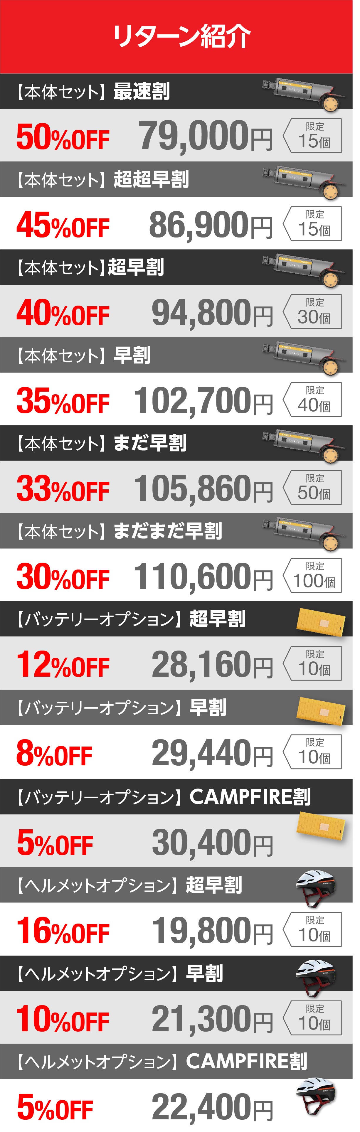 (最大走行距離は50〜70Km。道路状況やライダーの体重、走行方法などにより変動。)