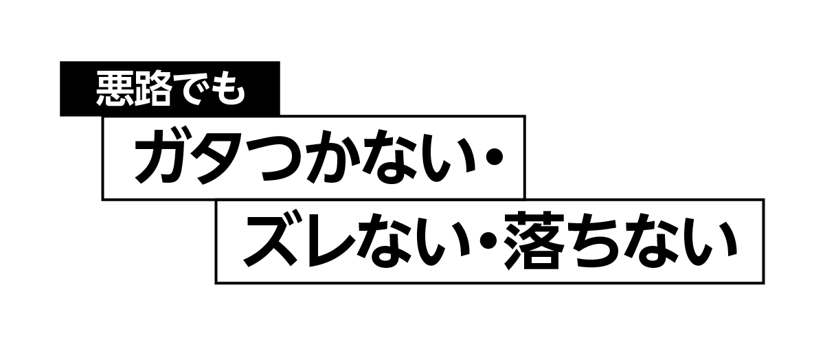 急な横揺れでもズレたり外れたりする心配はありません。段差も横揺れもビクともせず、走りに集中できる設計です。