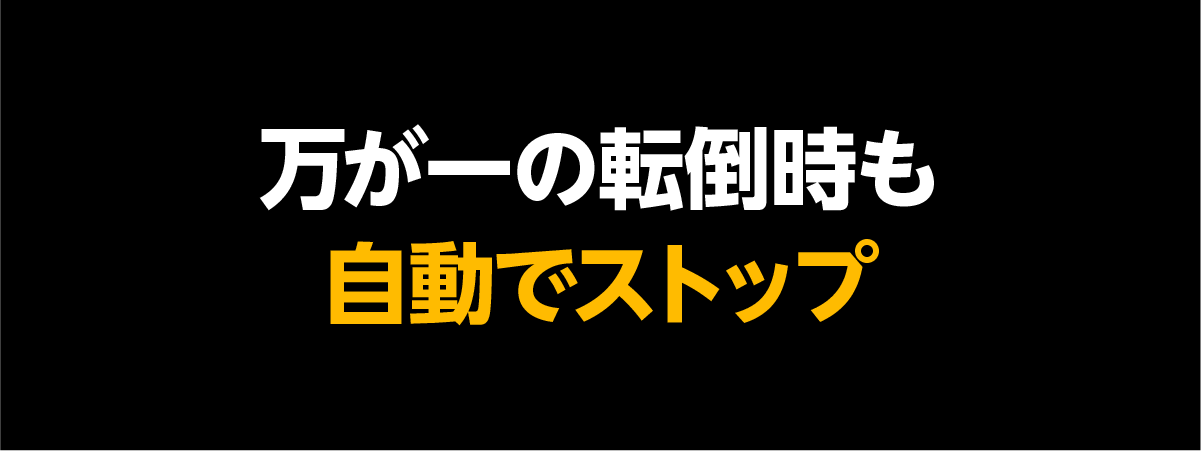 ジャイロセンサーが30度以上の傾きを検知すると、自動的にモーターを停止します。
