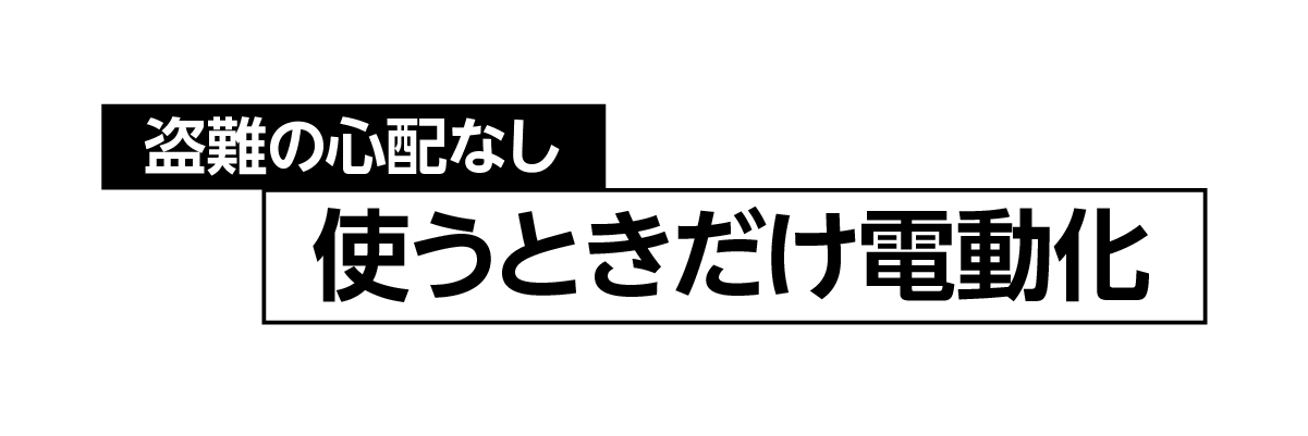 さらに、簡単に取り外しが可能で3kgと持ち運びにも優れているため電動ユニットごと外して駐輪することで盗難の心配はありません。