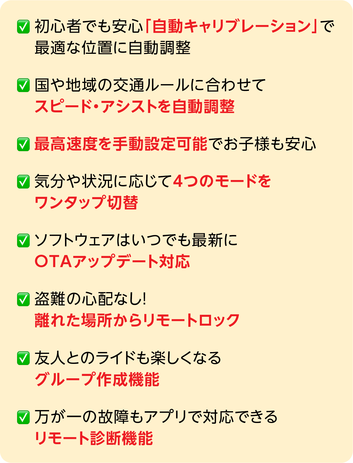 電動自転車の”暴走リスク”を防ぎ、あなたや家族の安全を守ります。