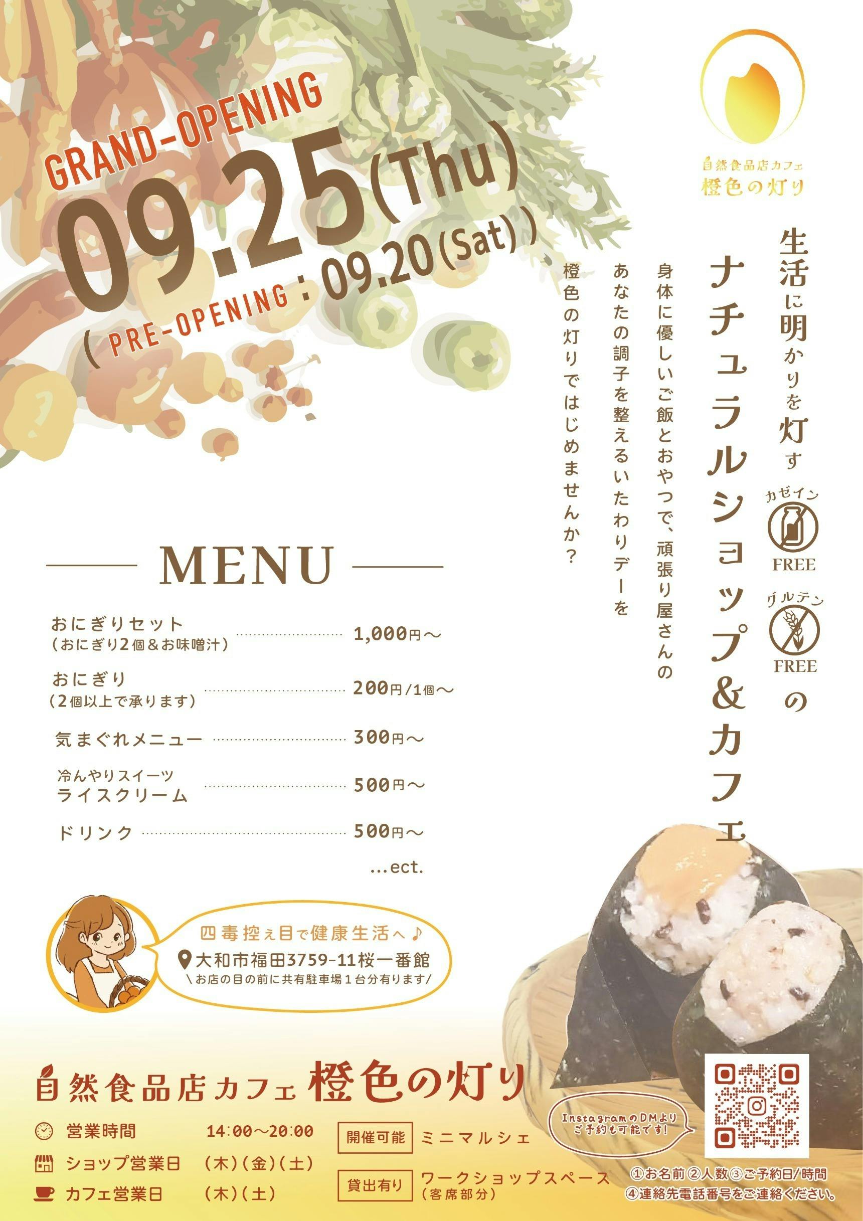 外出先でも安心して食事やおやつを楽しめる場所を提供し、身体に優しい調味料等や自然農のお野菜を販売することで、健康的なライフスタイルを応援します。また、ミニマルシェスペースを通じて、同様の価値観を持つ方々と知識やアイデアを共有する癒しのコミュニティを育みたいと考えています。