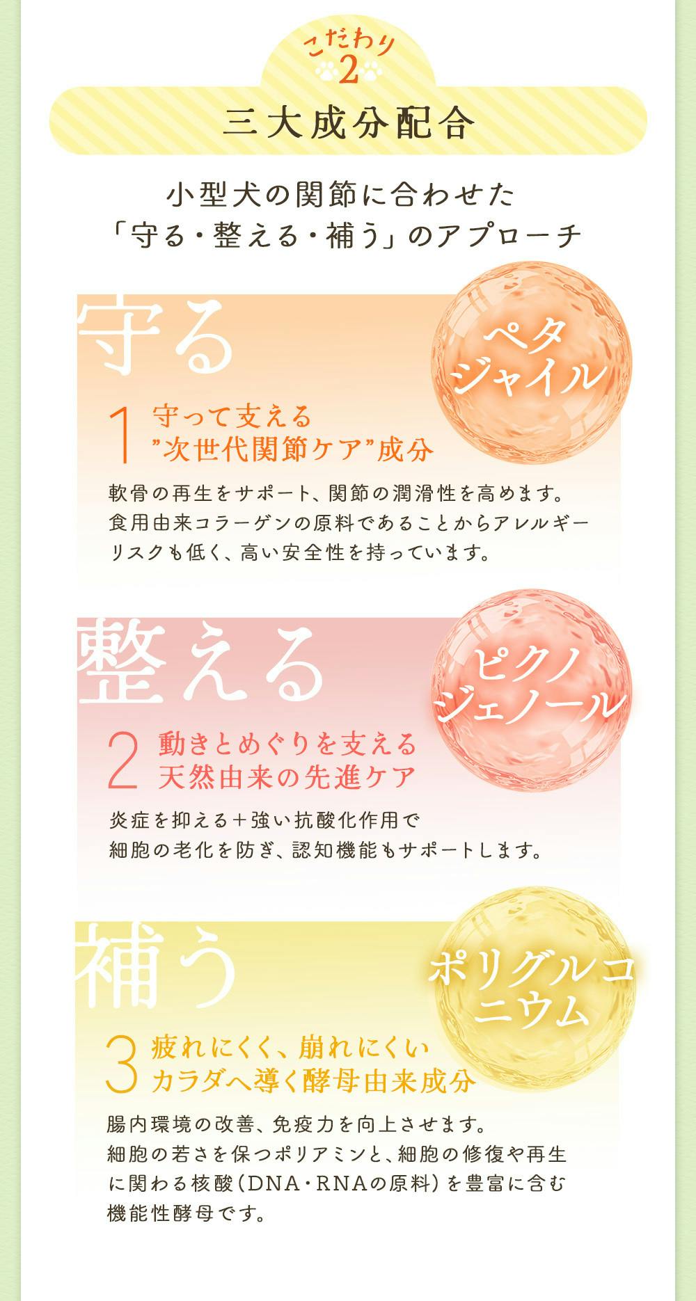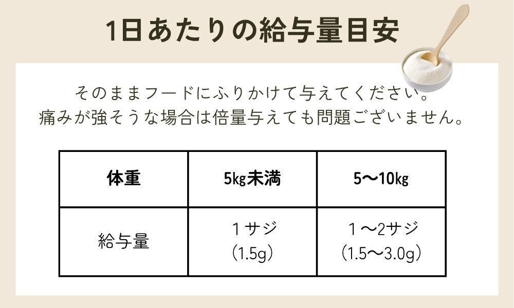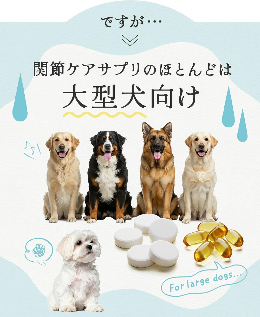 関節に悩むシニア犬にも、今からケアを始めたい若い子にも使っていただけます。