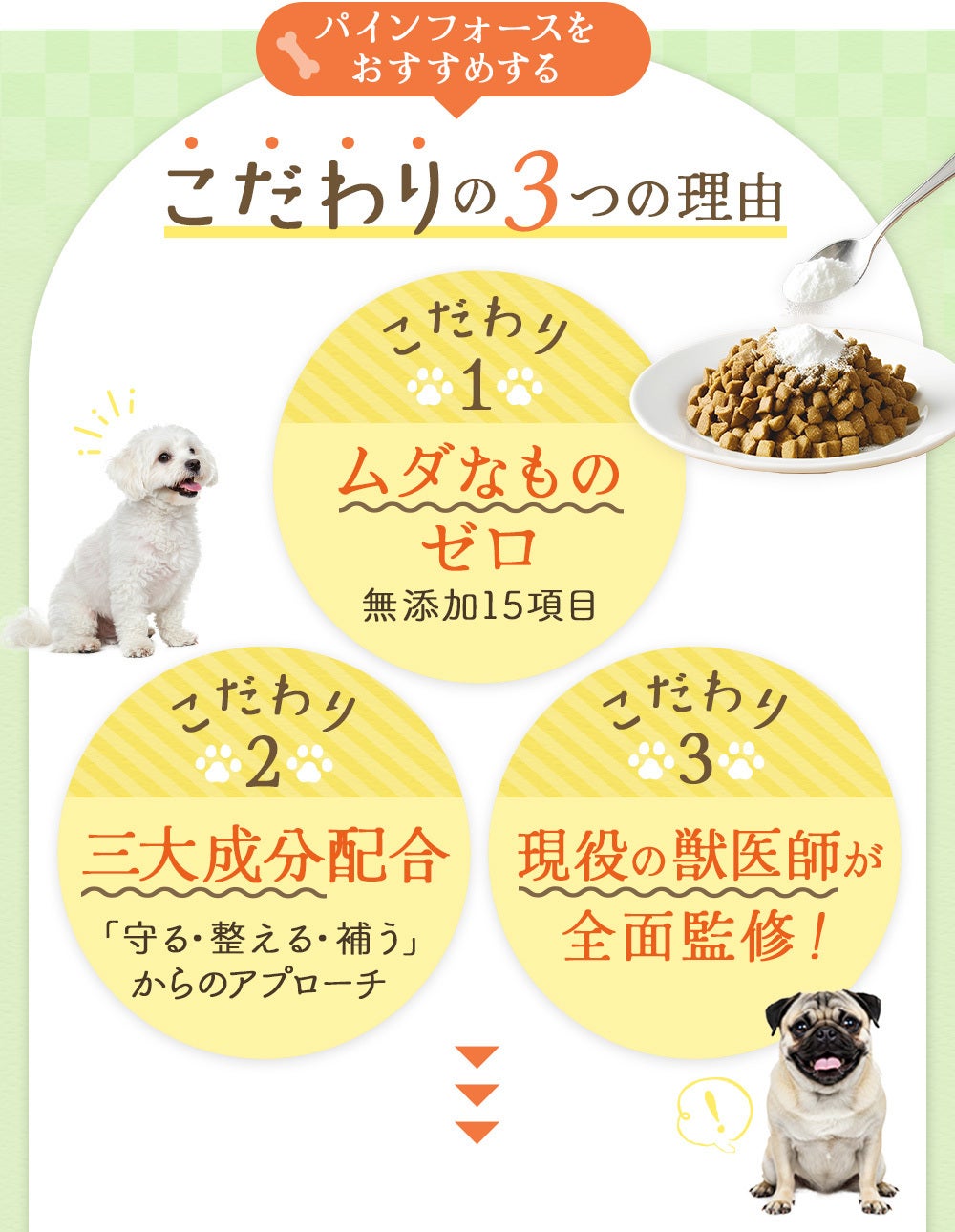パインフォースでは妥協せず、ヒューマングレード原料を使用しています。