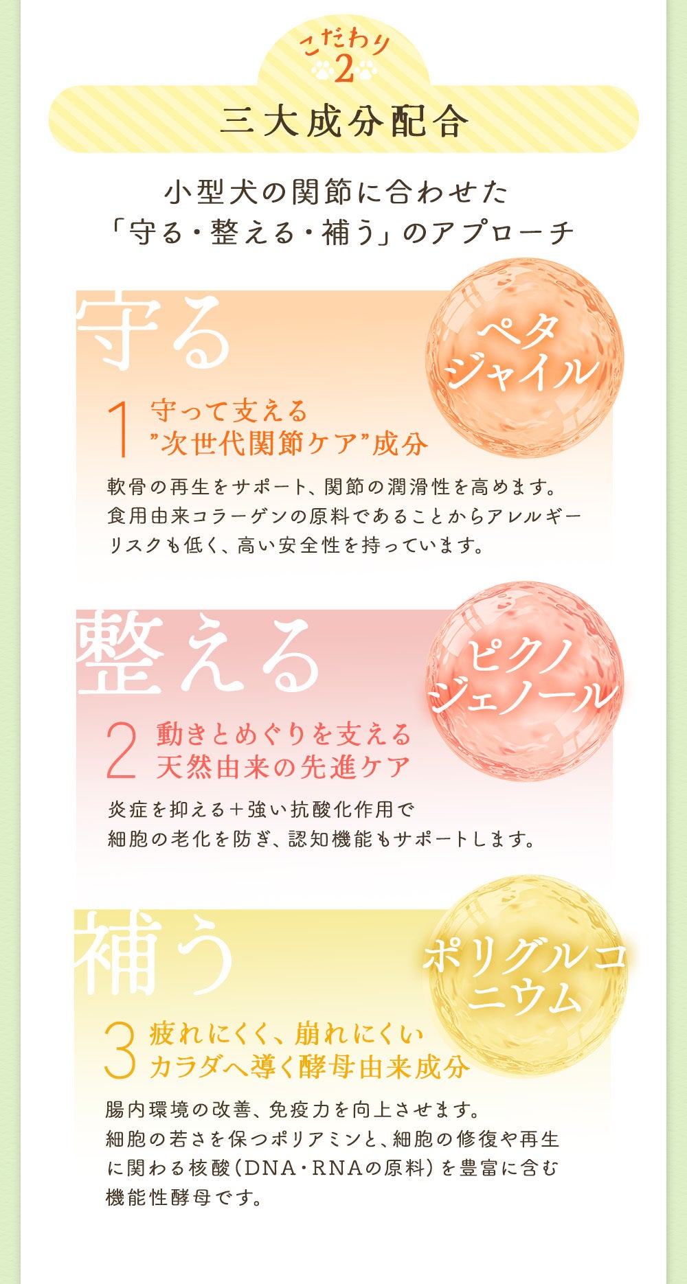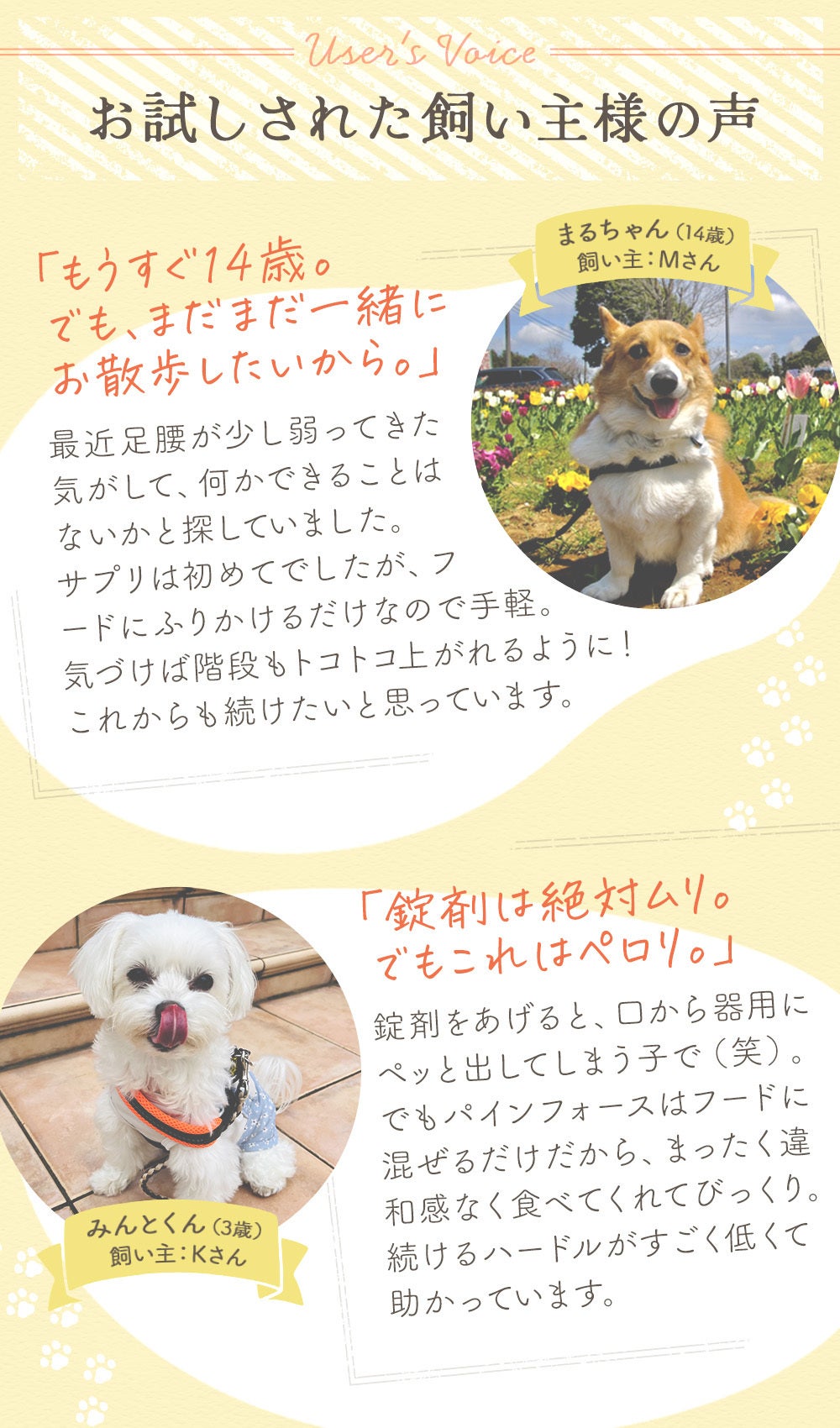 関節に悩むシニア犬にも、今からケアを始めたい若い子にも使っていただけます。