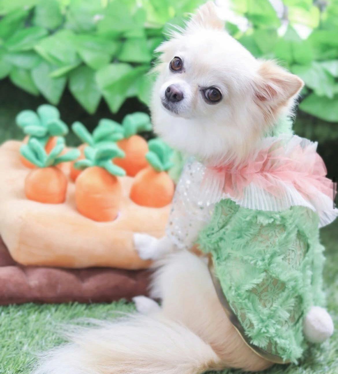 写真は大好きなニンジンカラーのお洋服とおもちゃで、アイラブニンジンワールド!