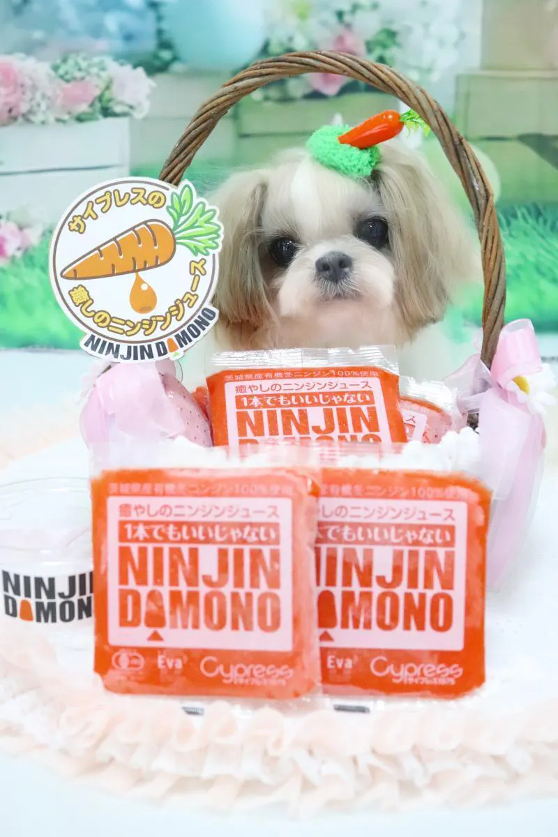 ニンジンだものアンバサダーのいちごです。私と愛犬いちごは、今回のクラウドファンディングを可愛いみなさんの笑顔がたくさんみられるよう応援しています!ぜひ皆さまも一緒に【癒やしのニンジンジュース】を体験してね