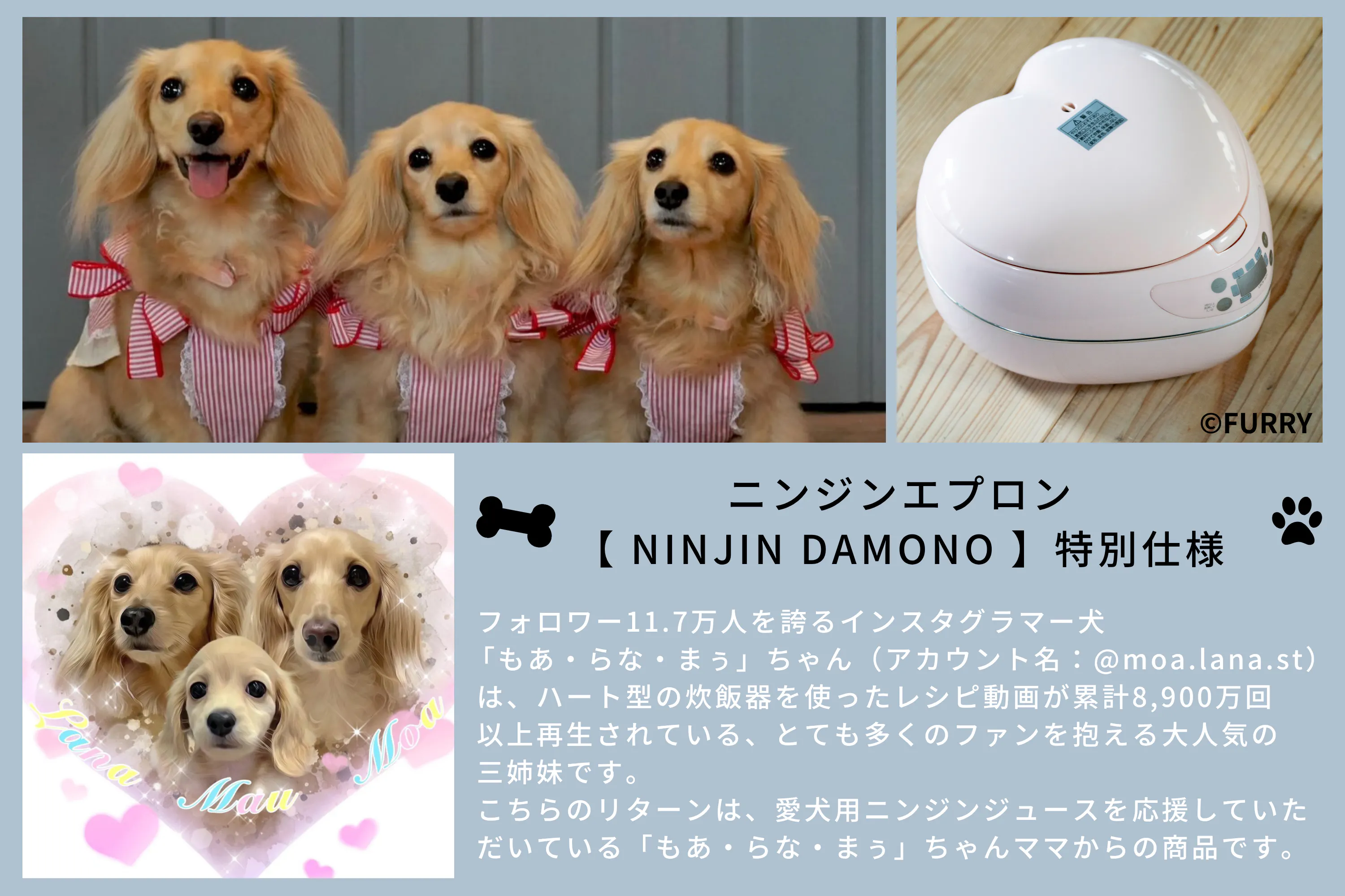 【 NINJIN DAMONO 】は、雑誌『FURRY』(2025年2月28日に創刊された「わんこと人との新しいカタチ」を提案する愛犬用雑誌)vol.1の企画「美人姉妹 もあ・らな・まぅ なんでも一緒にやってみよ」でコラボさせていただきました。