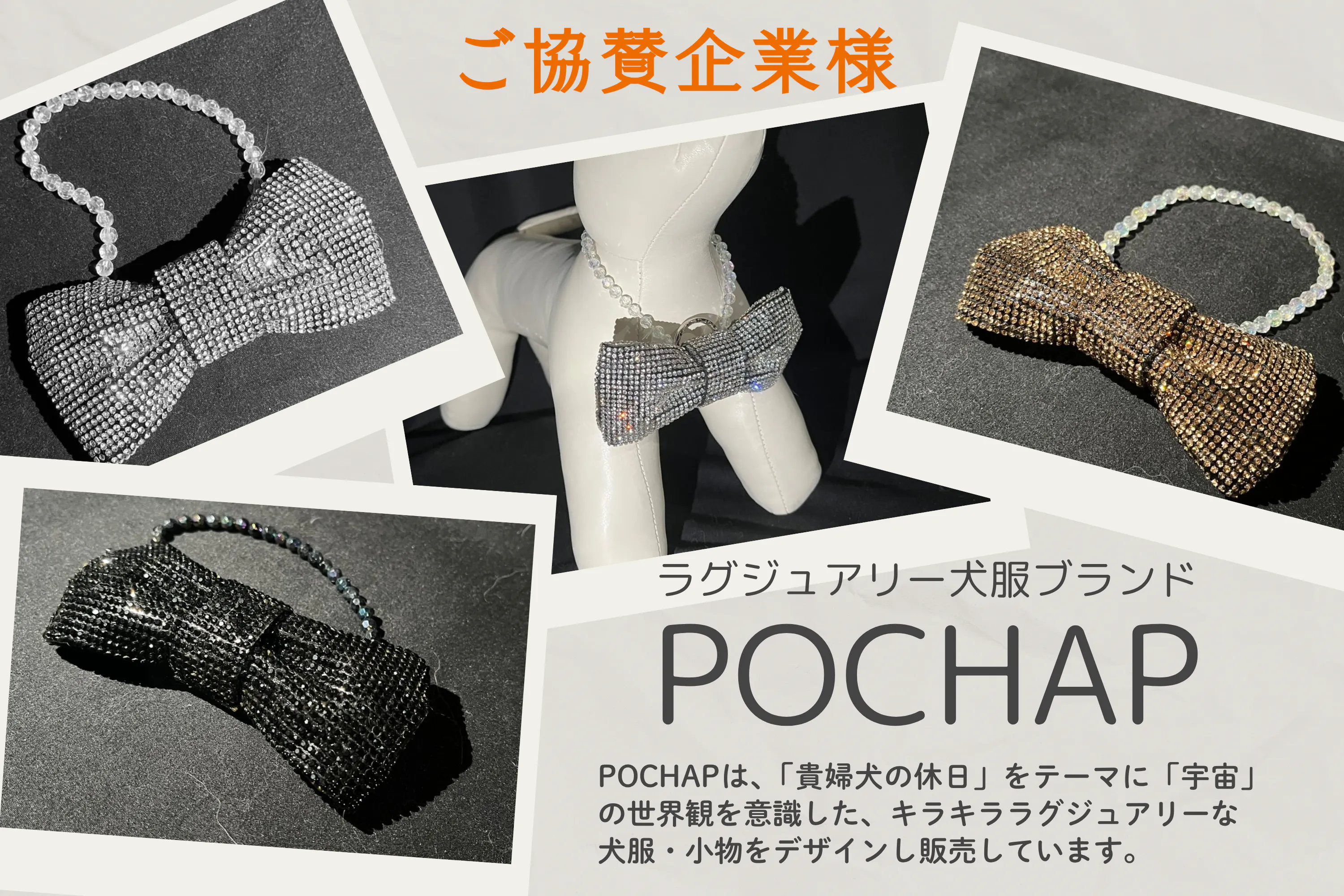 POCHAPは、「貴婦犬の休日」をテーマに「宇宙」の世界観を意識した、キラキララグジュアリーな犬服・小物をデザインし販売しています。