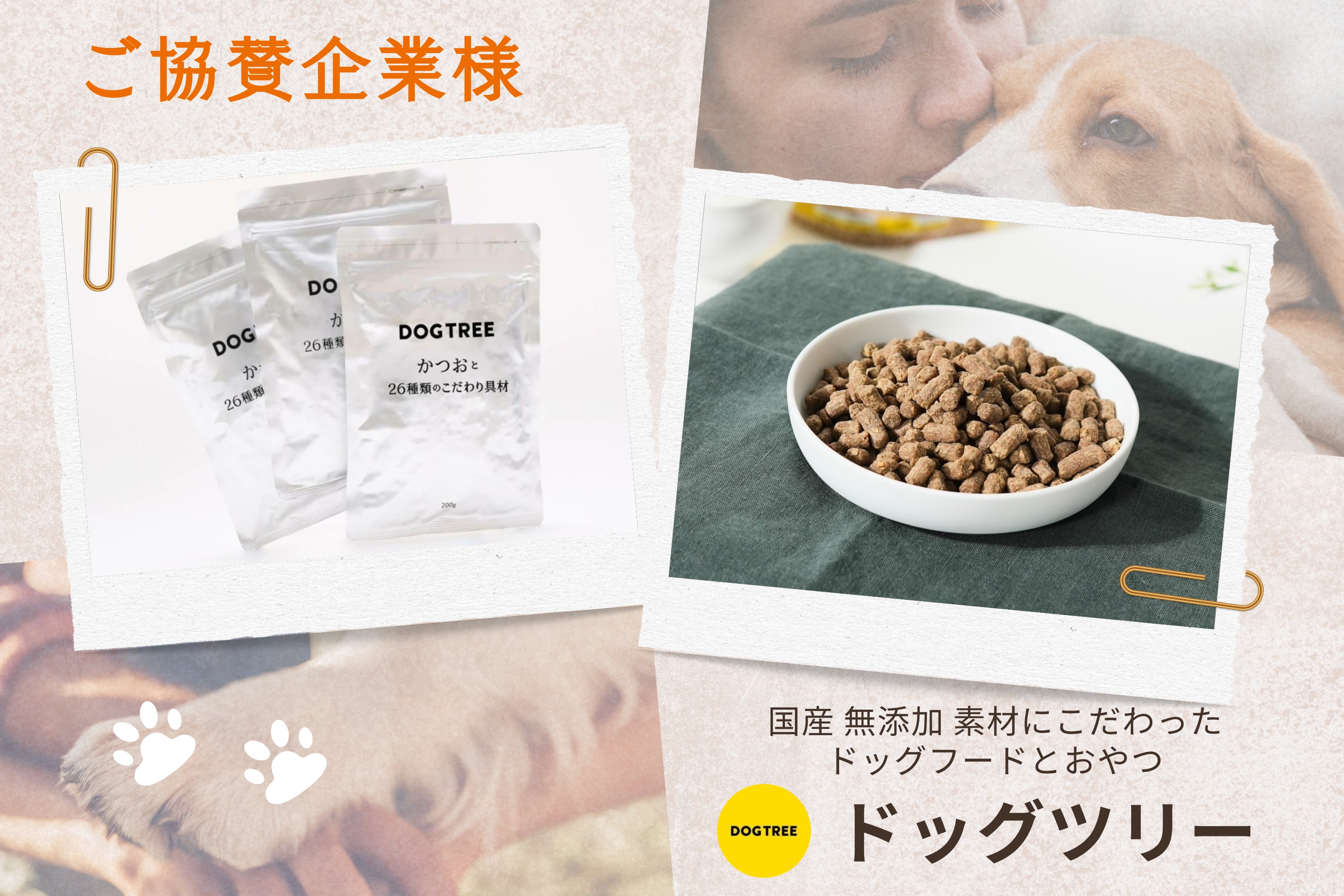 国産・無添加・天然素材にこだわるDOG TREEからお肉不使用、濃厚な旨味と香りが広がる魚のドッグフード『かつおと26種類のこだわり具材』を協賛していただきました。