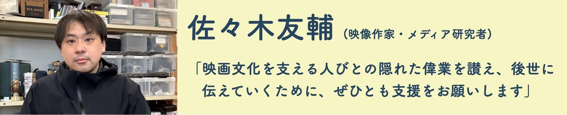 映画文化を支える人びとの隠れた偉業を讃え、後世に伝えていくために、ぜひとも支援をよろしくお願いします。