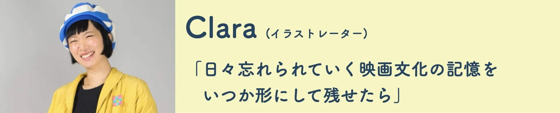 本書には、Claraさんによるポップで親しみやすいイラストとともに、私たちが丁寧に掘り起こしてきた映画文化の記憶が収められています。この一冊を形にするために、どうかご支援をよろしくお願いいたします!