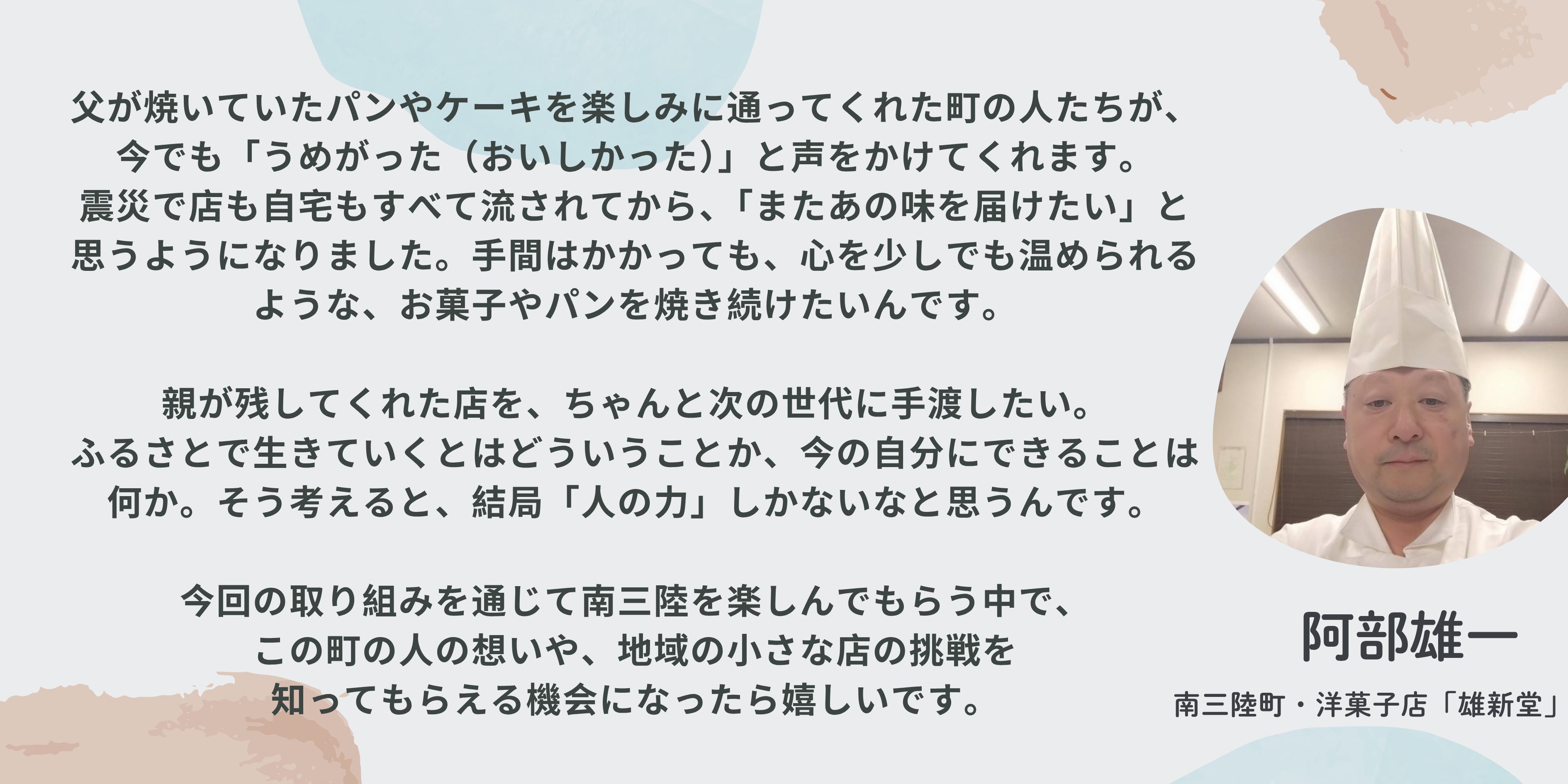 この挑戦を通じて、南三陸の新しい魅力と循環を、ぜひ一緒に育てていけたら嬉しいです。