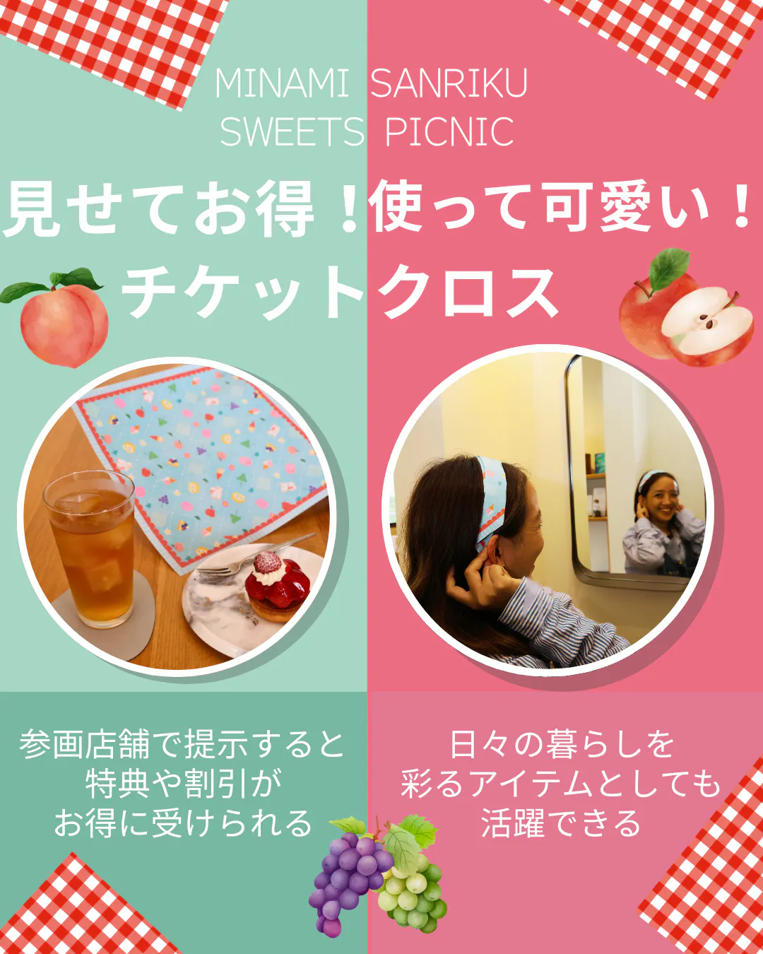 クラウドファンディングや町内各店舗で限定販売される、「チケットクロス」を事前購入していただくと、スイーツピクニックを10倍楽しんで頂くことができます!