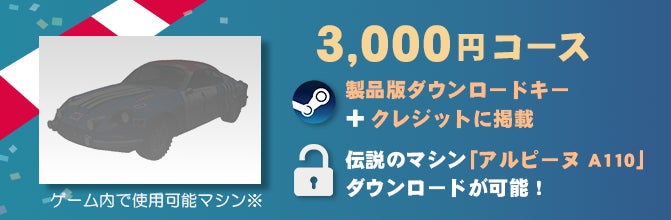 3,000円プランの内容に加えて製品版では入手できない、**操作可能なレジェンドマシン「マツダ・787」、「アルピーヌ A110」**をゲーム内で使用可能に!