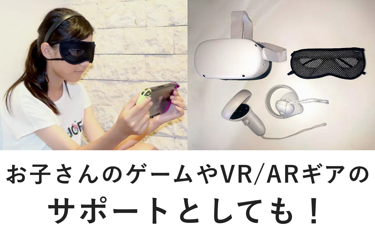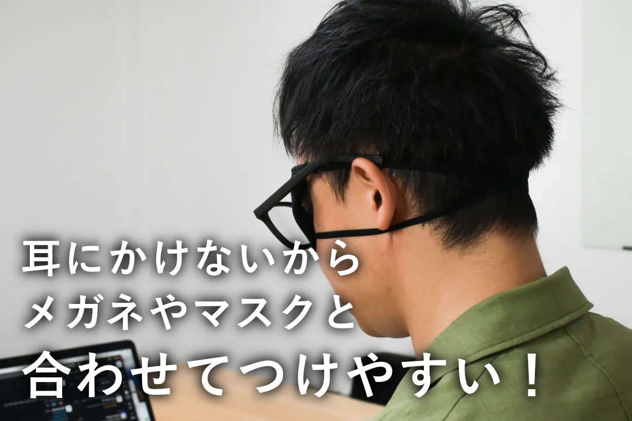便利な機能としてはゴムの付け替えにより耳への負担を軽減することでPC用ブルーライトカットなどのメガネとの併用も可能に。またVRゴーグル使用時には機器本体のズレや汗での滑りを軽減できることでより快適にプレイすることもできます。