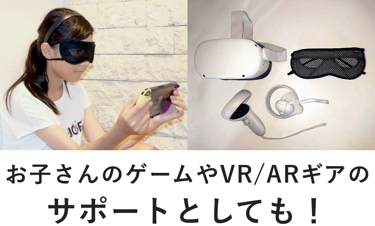 便利な機能としてはゴムの付け替えにより耳への負担を軽減することでPC用ブルーライトカットなどのメガネとの併用も可能に。またVRゴーグル使用時には機器本体のズレや汗での滑りを軽減できることでより快適にプレイすることもできます。