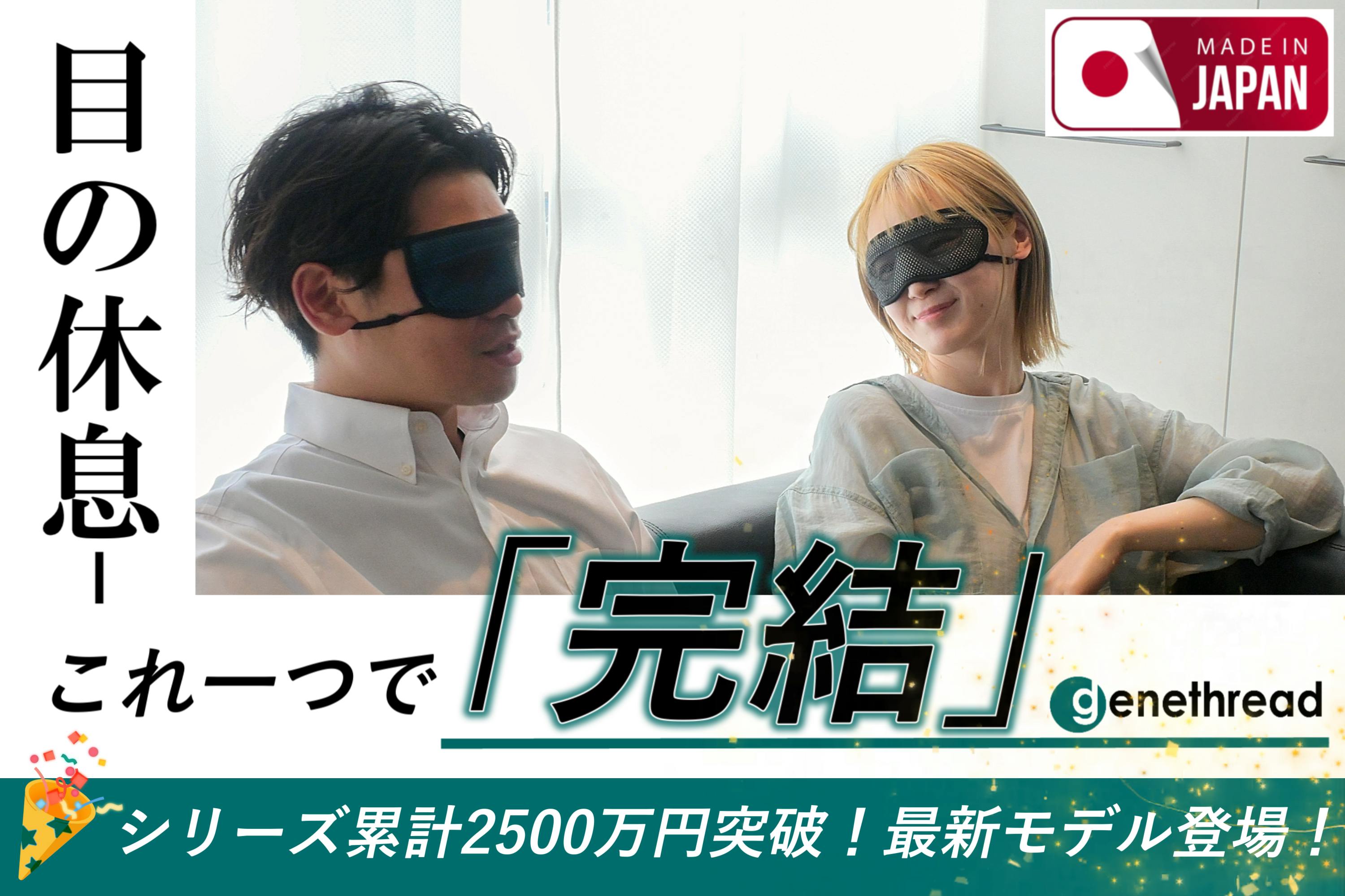2025/06/25 20:00【シリーズ累計2500万円突破!最新モデルが登場】いつも応援ありがとうございます。皆さまのおかげで、これまで弊社のアイマスクはシリーズ累計2,500万円を突破いたしました!そしてついに、この度待望の最新モデルが登場!目元をやさしく包み込み、日常の「休息」がこの1つで完結します。快適性・遮光性・フィット感、すべてにこだわった逸品です。今回のモデルは、これまでの支援者の皆さまの声を反映し、さらにアップデートを重ねた自信作となっております。キャンプファイヤーでの限定価格でご用意しておりますので、ぜひこの機会に最新のアイマスクをご体感ください!▼プロジェクトページはこちら[https://camp-fire.jp/mypage/projects/854522/activities/new]今後も引き続き、活動報告や制作状況などお届けしてまいります。どうぞよろしくお願いいたします!「技術で健康をデザインする」弊社で開発する商品すべてが皆さまにとって助かる、ありがたい商品になれるよう1枚1枚しっかり丁寧に作ってお届けします。日本の縫製技術を次の世代に継承できるよう新しいアイデアと共に、これからも健康をサポートするモノづくりに励んでいきたいと考えています。ー 有限会社ジーンスレッド ー もっと見る