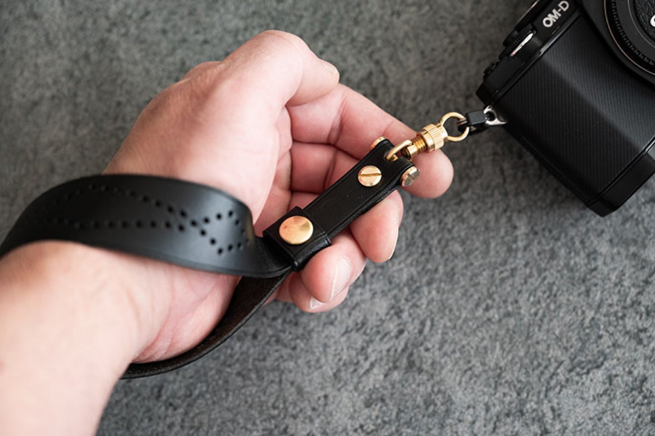 他のハンドストラップとは一線を画すオリジナルな意匠は、どんなカメラにもマッチします。