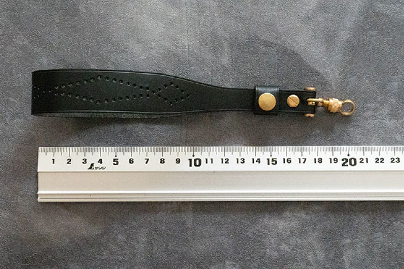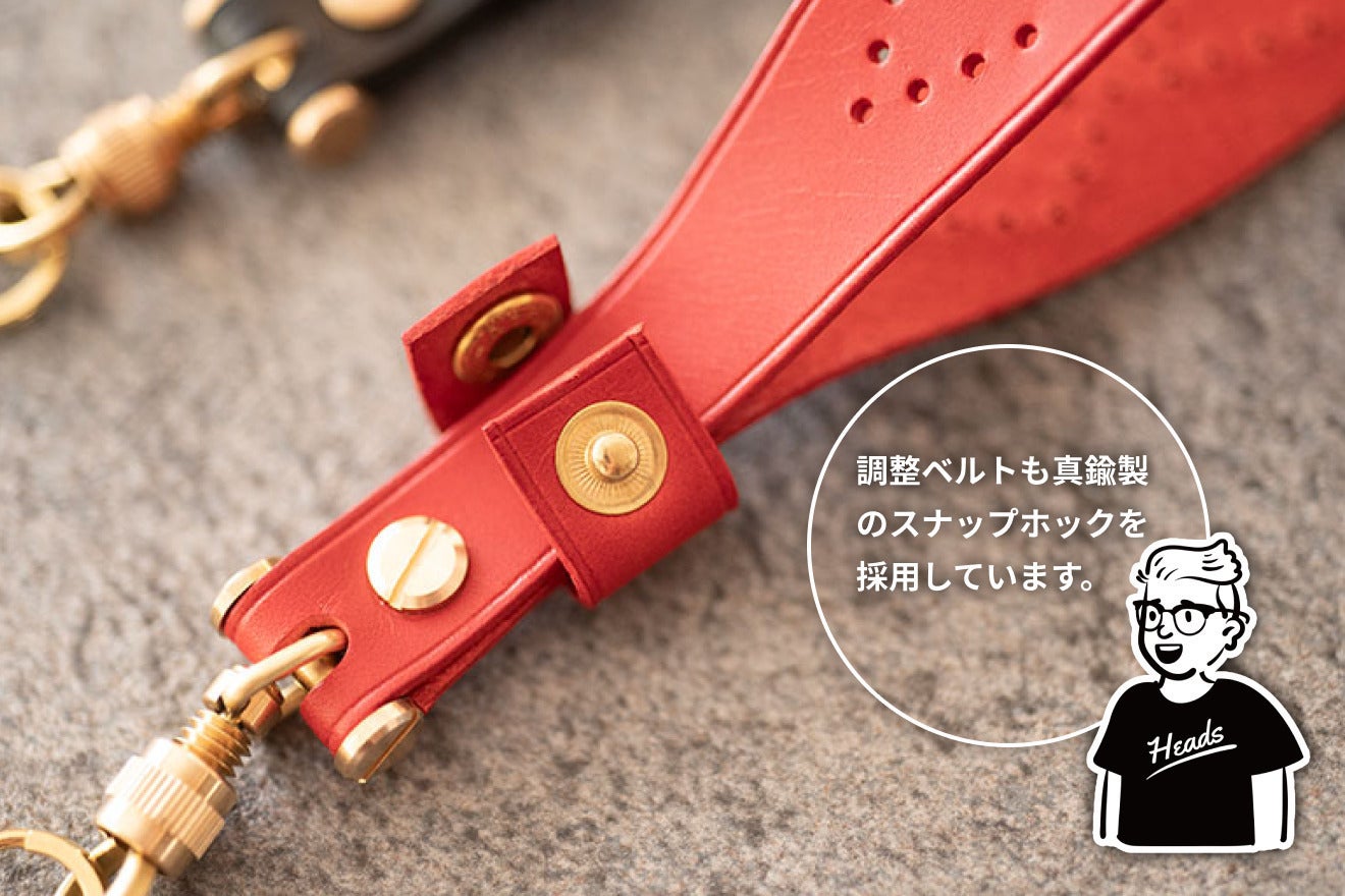ネジ式真鍮金具とレザーを組み合わせた趣のあるストラップ