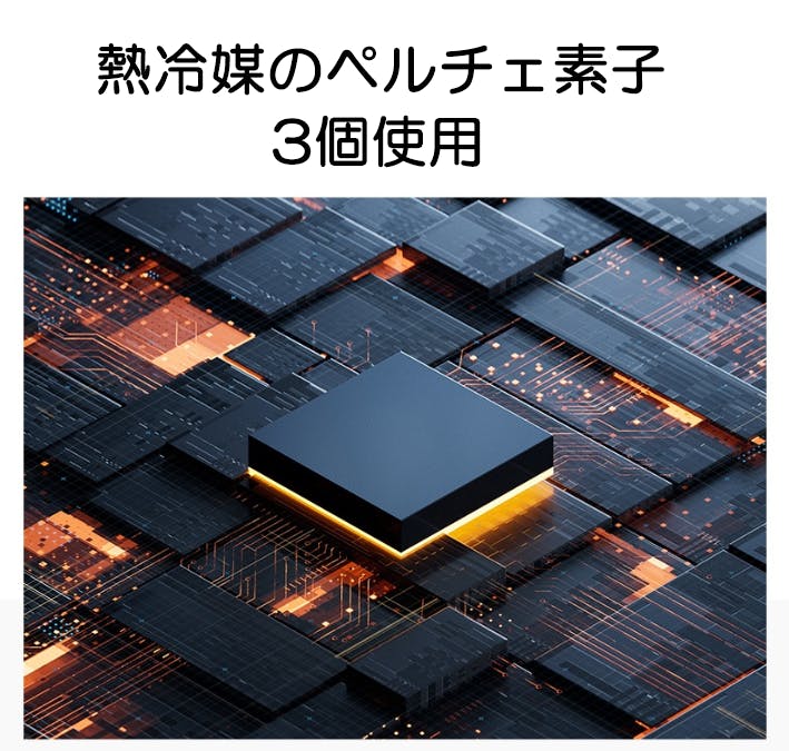 暖めたり冷やしたり温度をコントロールするペルチェ素子を3つ使用することで素早く目的の温度に到達し、温度をキープ