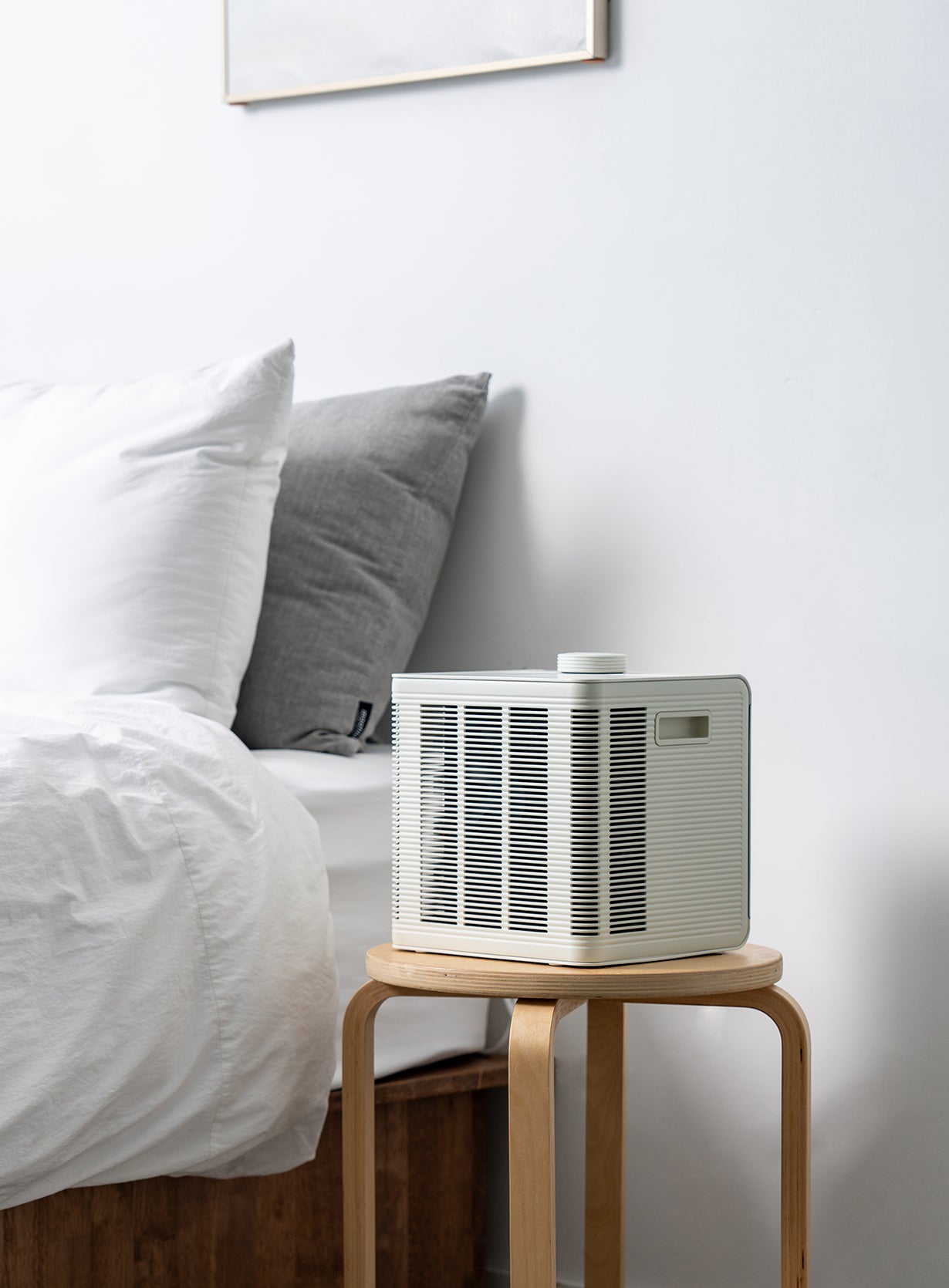 230×234×215mmのコンパクトデザインで無骨なデザインがどんなお部屋でも寝室でも違和感なく設置できます。