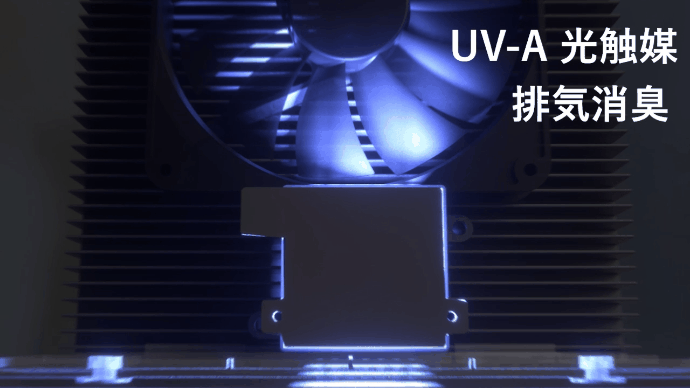 光触媒(TiO2)を使用した内部構造は抗菌作用があり消臭も行います。空気清浄機等にも使わる消臭方法で特殊な触媒(酸化チタン)に光を当てることで消臭効果を得る特殊な方法です。