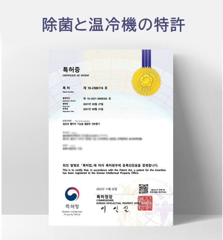 温冷水マットに除菌と消臭機能を盛り込んだ製法は特許技術です。