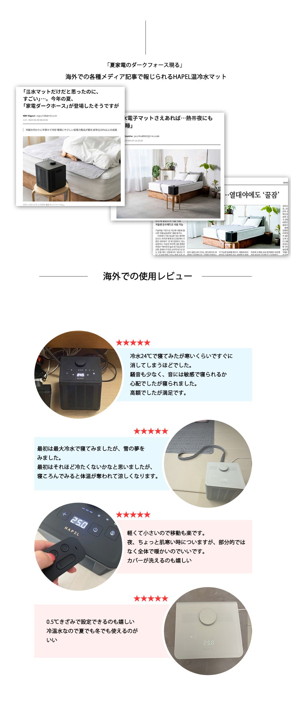 快適に寝られるには室温よりもマット温度であるという開発コンセプトによって海外メディアでは数多く取り上げられ、また、販売後のお客様レビューも高評価です。